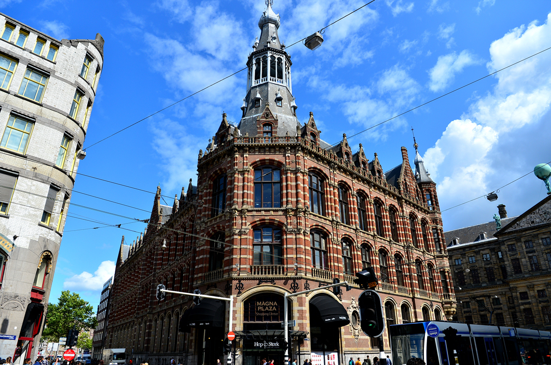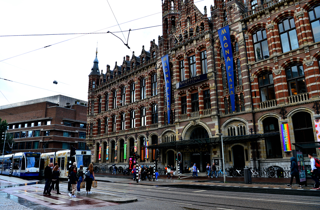왕궁 뒤쪽에 위치한 아름다운 쇼핑몰 Magna Plaza의 외관이다.