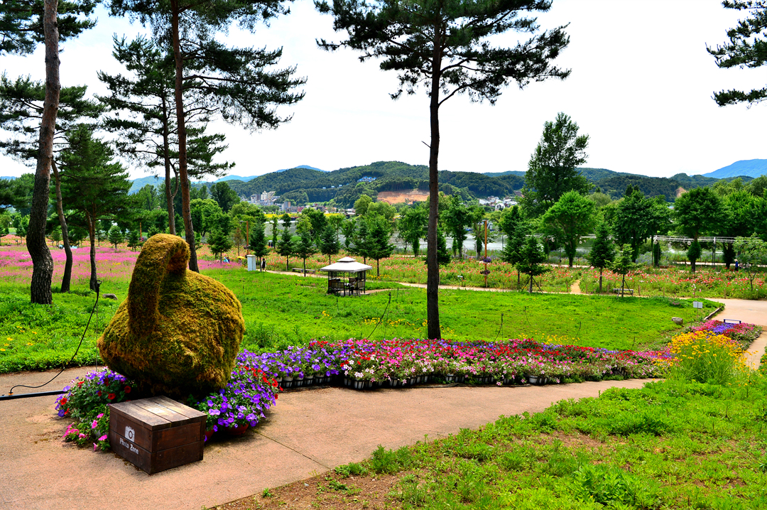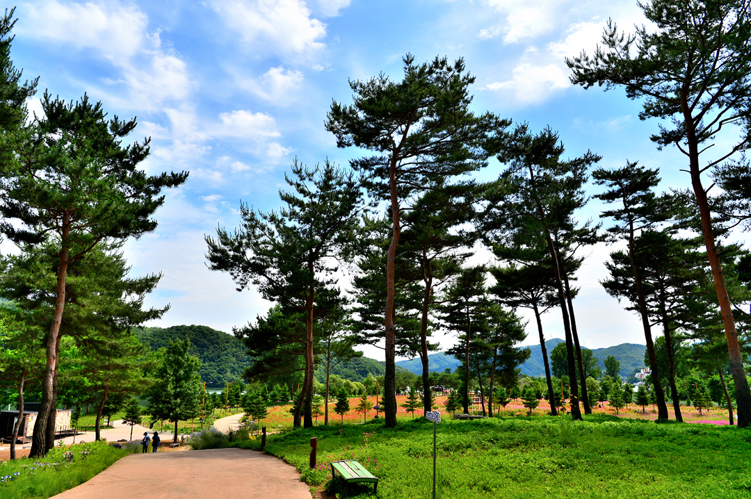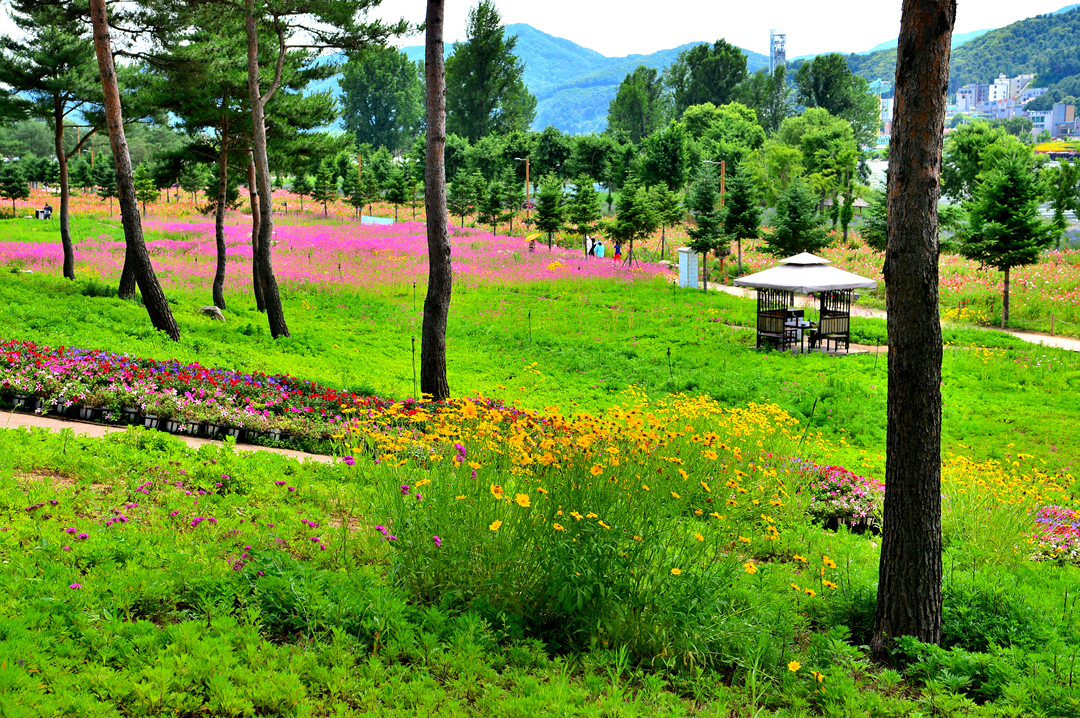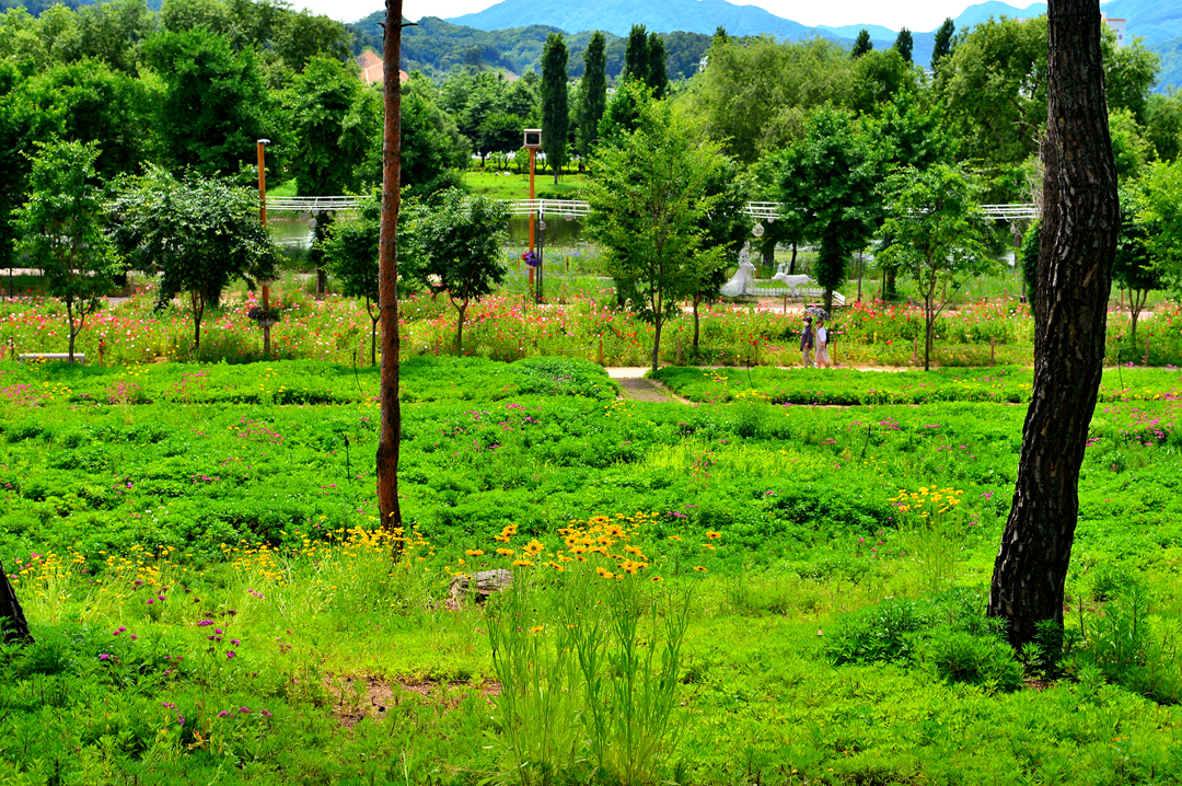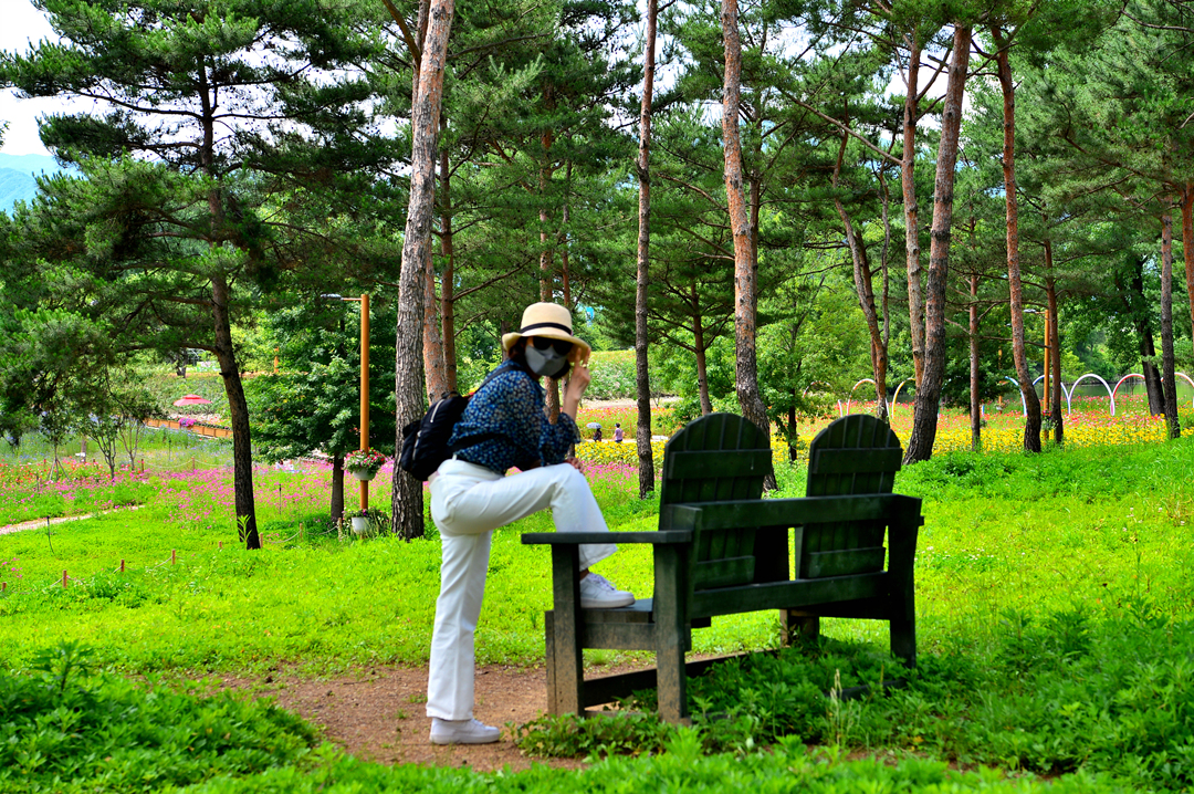 소나무 숲길 옆으로도 아름다운 꽃밭들이 줄지어 그 모습을 드러낸다.