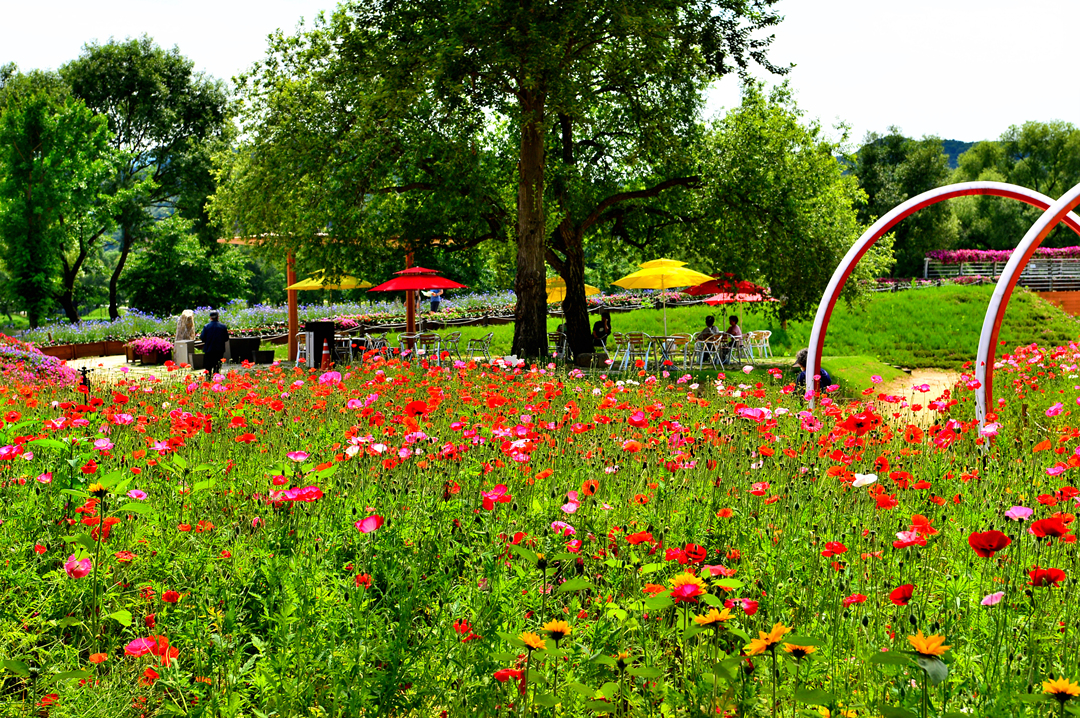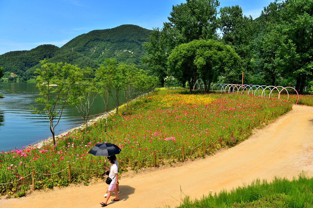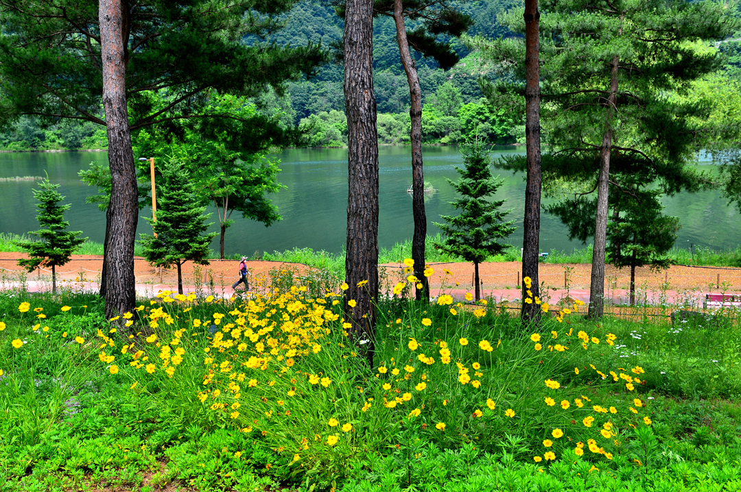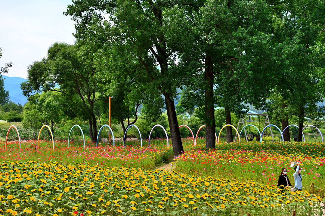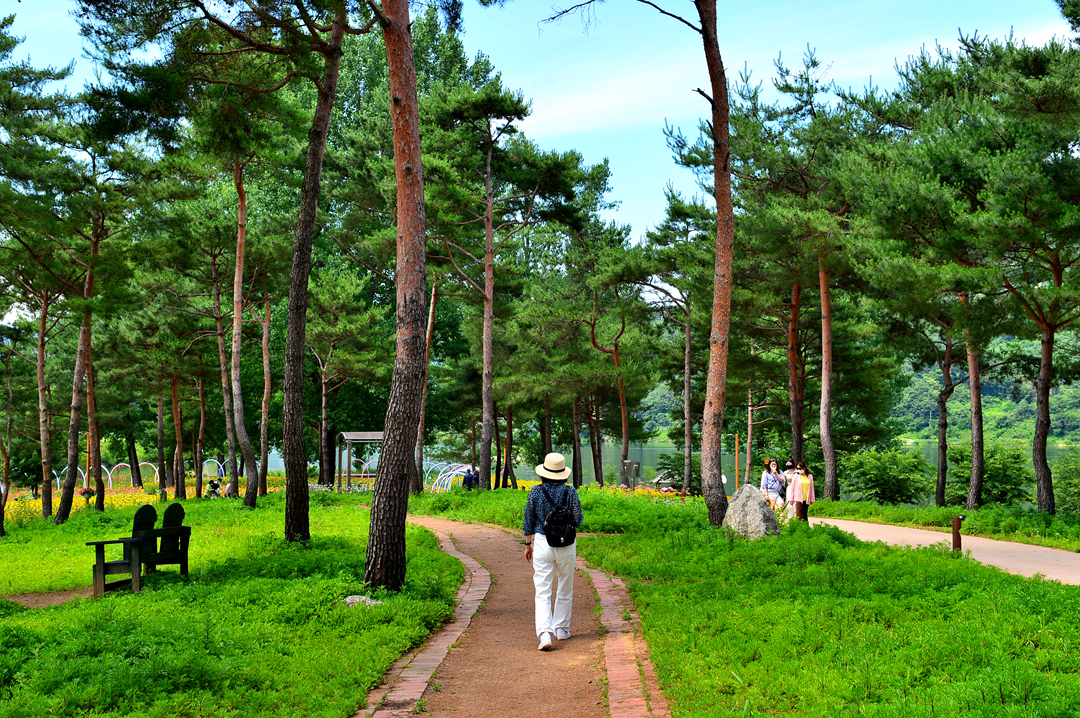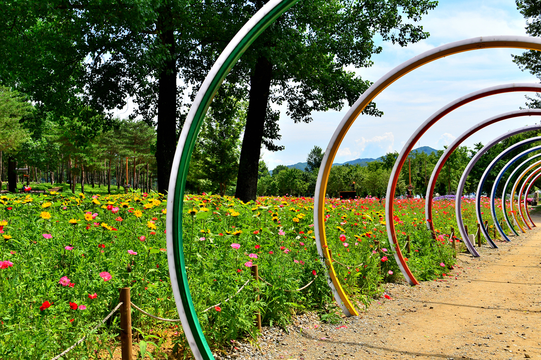 소나무 숲길 옆으로도 아름다운 꽃밭들이 줄지어 그 모습을 드러낸다.