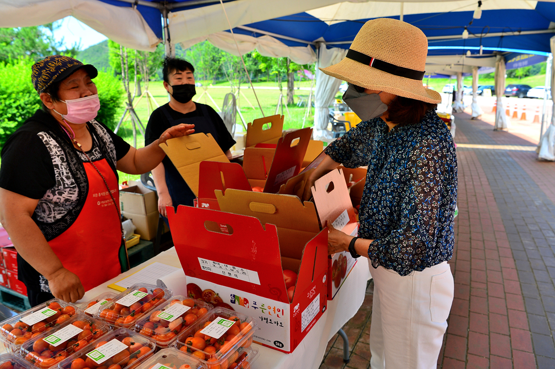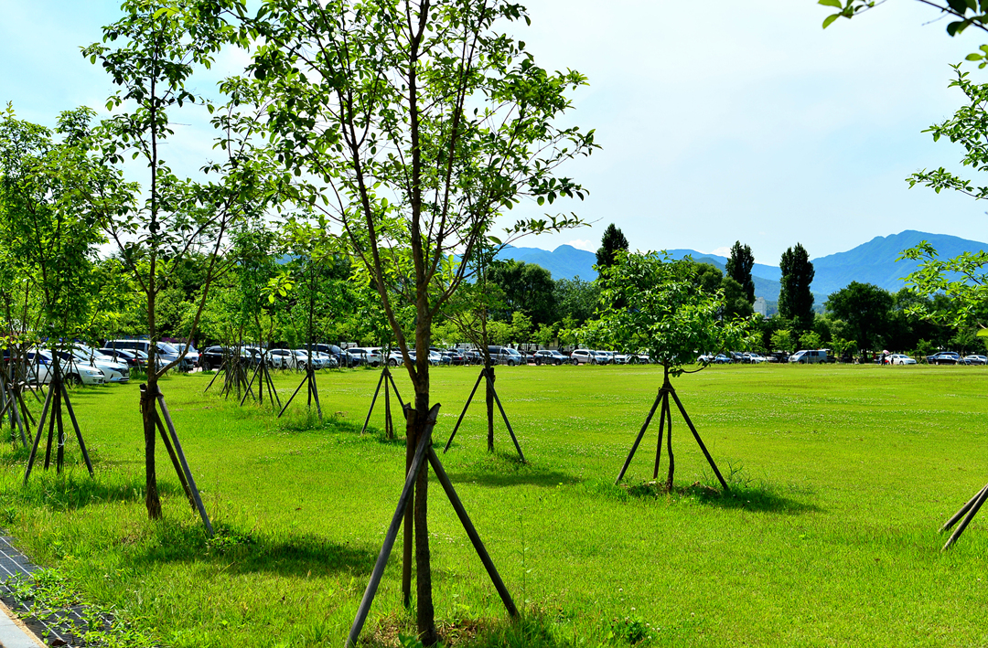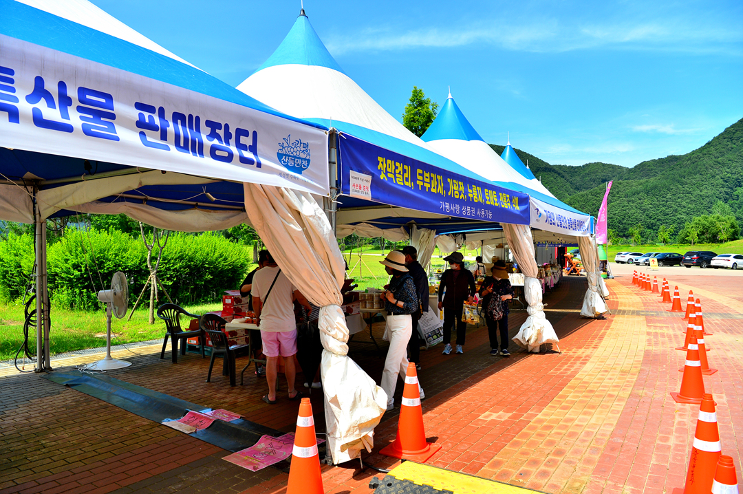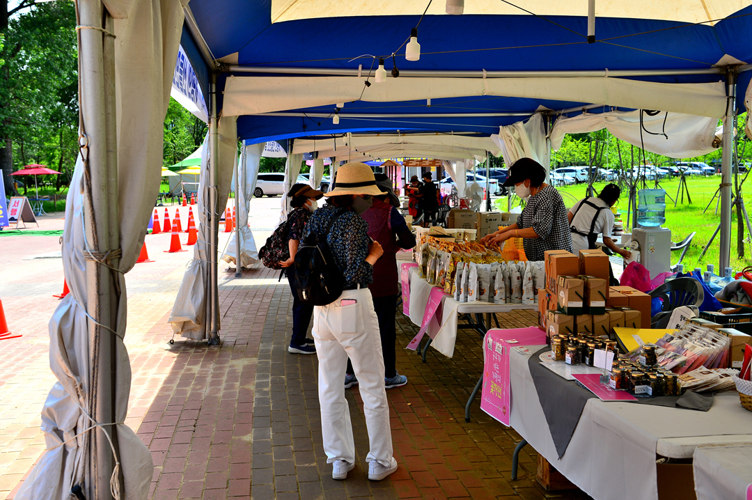 주차장과 잔디 광장이 있는 곳에 장터가 들어서 있다.