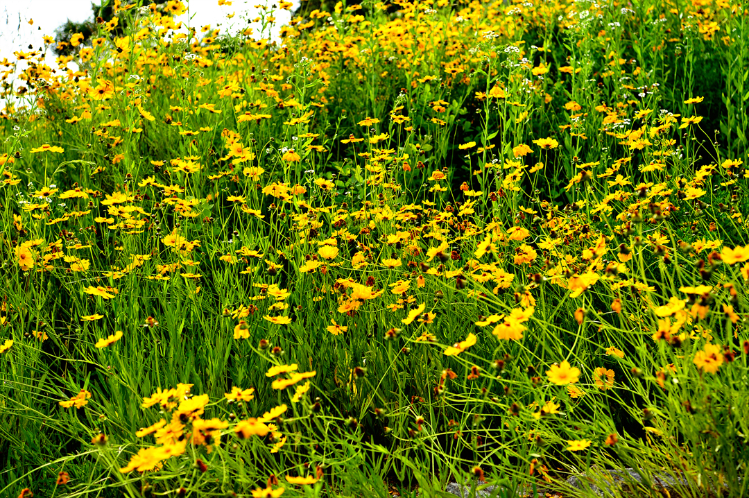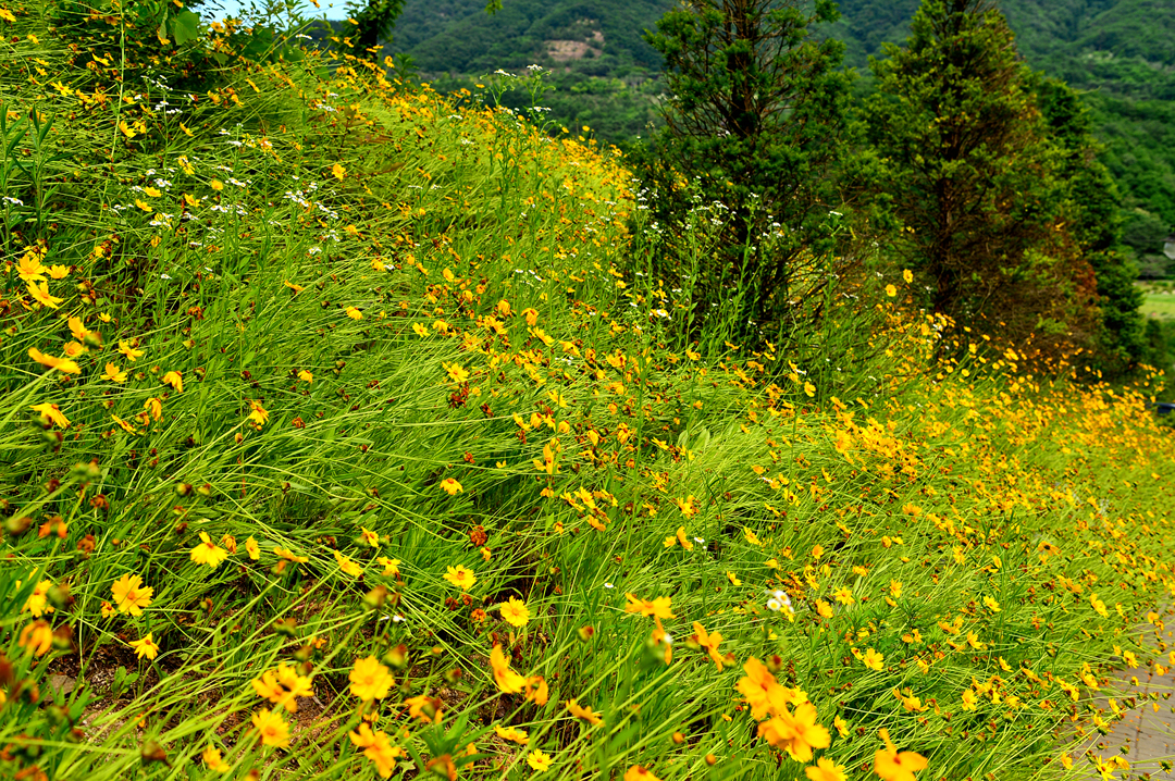 건물 아래의 축대까지 아름답게 피어있는 금계국 모습이다.