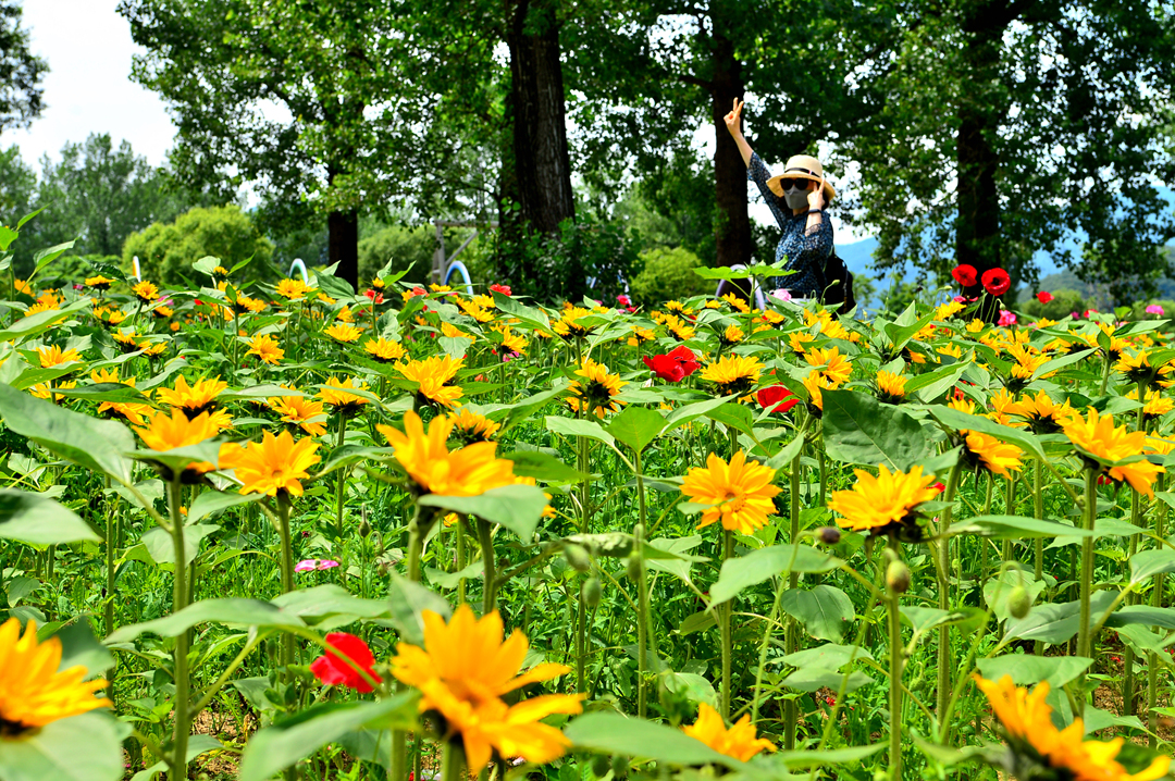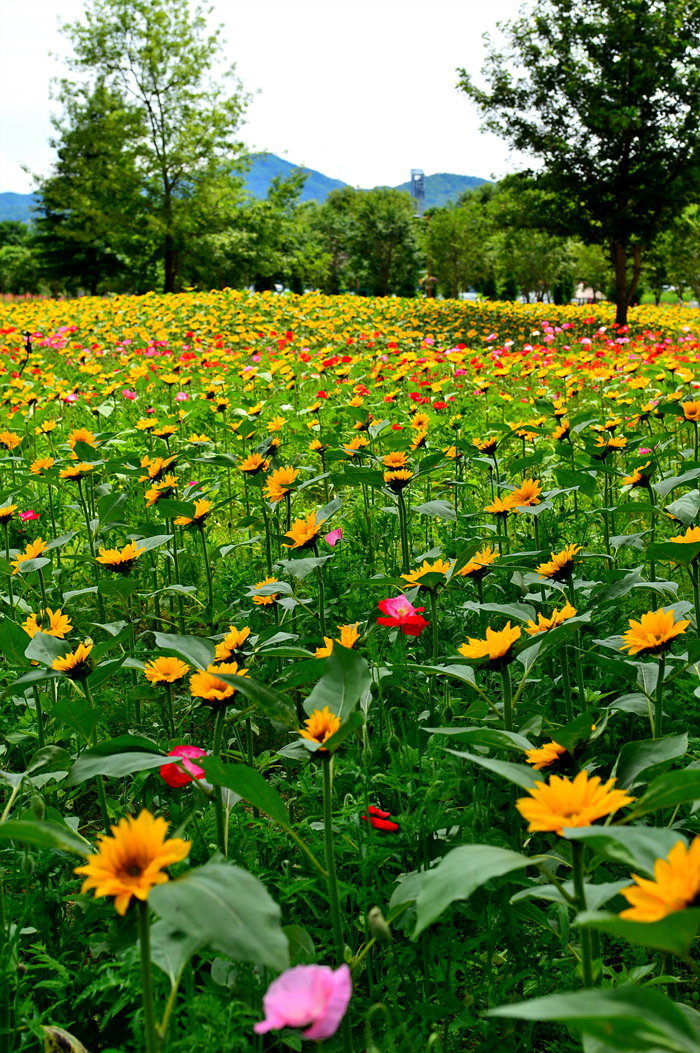 해바라기 꽃밭 옆에는 꽃양귀비도 아름답게 피어 있다.