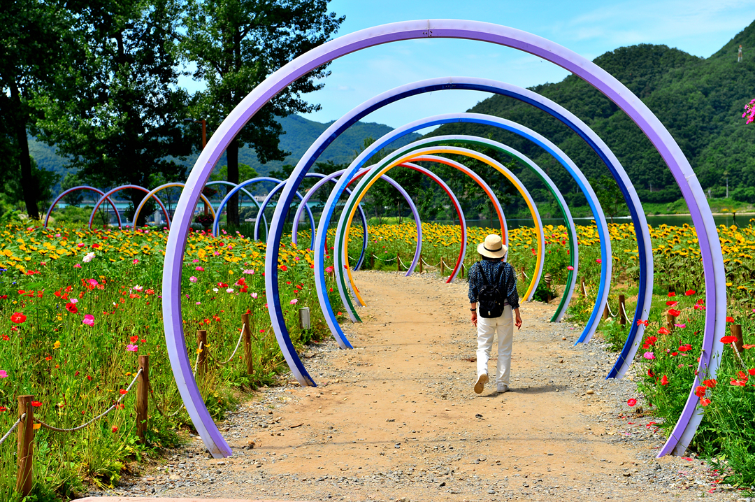 지붕이 없는 꽃 터널을 지나 꽃 정원을 나선다.