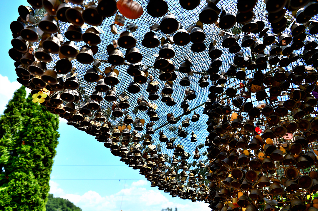 공중에 매달아 놓은 수많은 종들 모습이다.