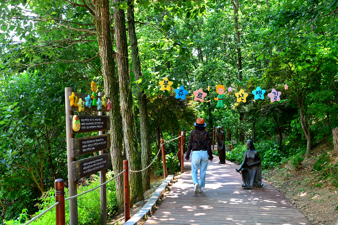 숲 속으로 이어지는 산책길이 보이는데 봉쥬르 산책길이란다.