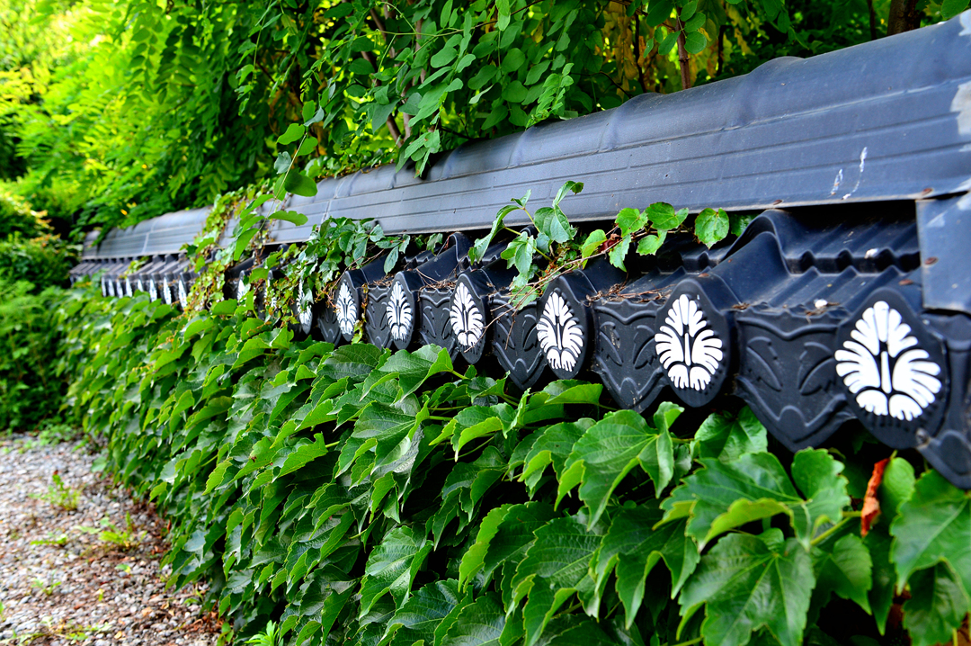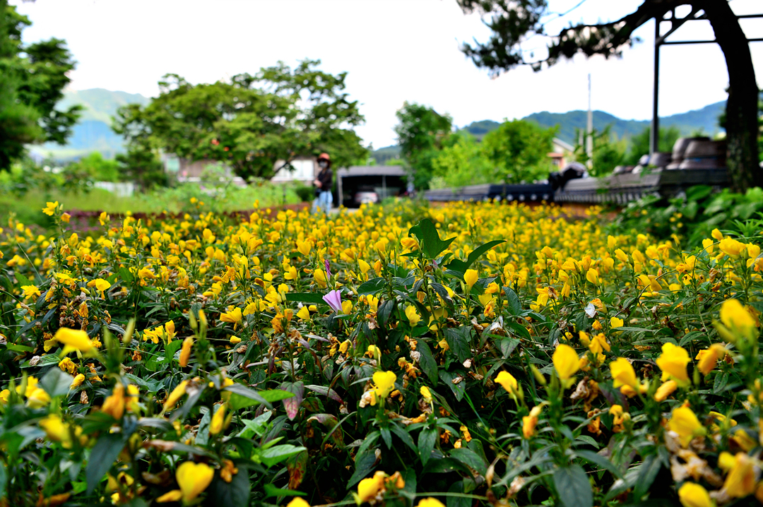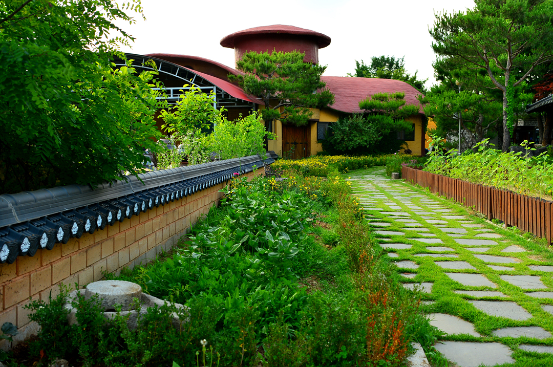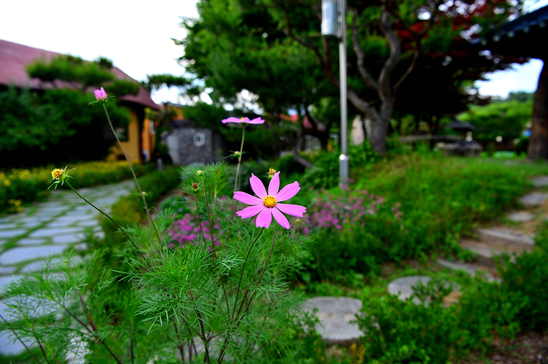 들풀 옆의 건물 앞 꽃밭이다.
