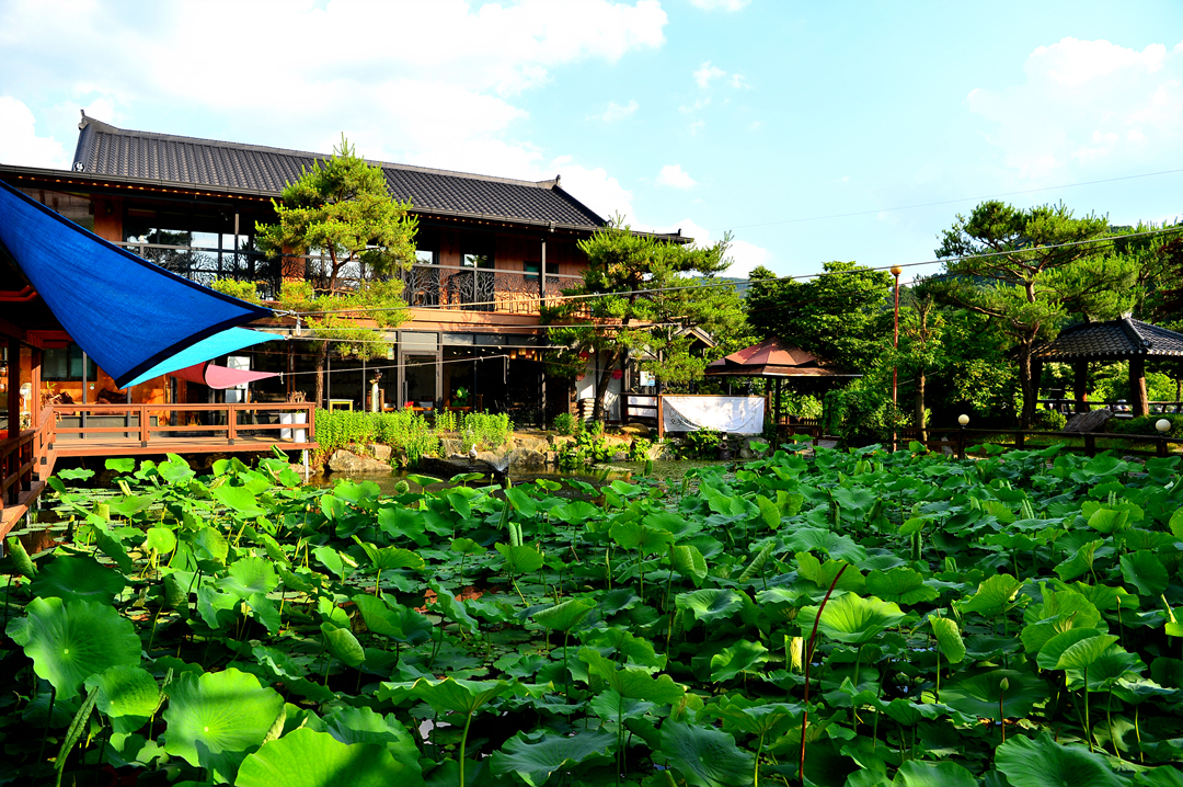 카페 건물과 식당 사이에는 커다란 연지도 조성해 놓았는데, 이 모습은 식당 들풀 앞에서 본