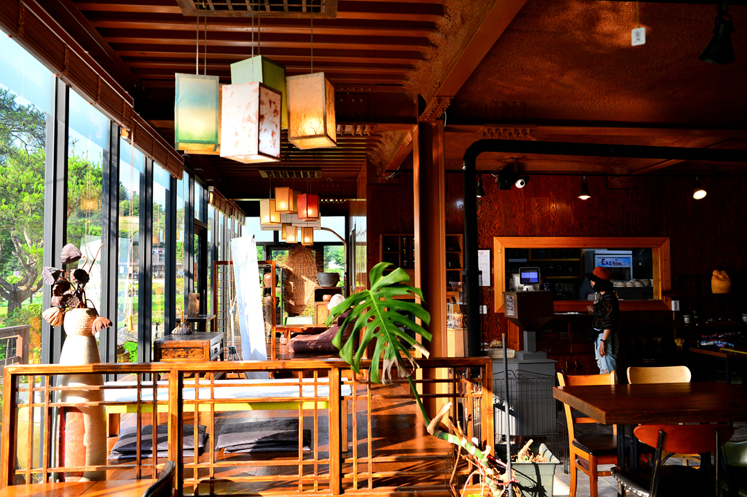 목재로 내부를 치장해 놓아서 한옥 같은 느낌이 드는데, 자세히 보면 철재 프레임을 바탕으로