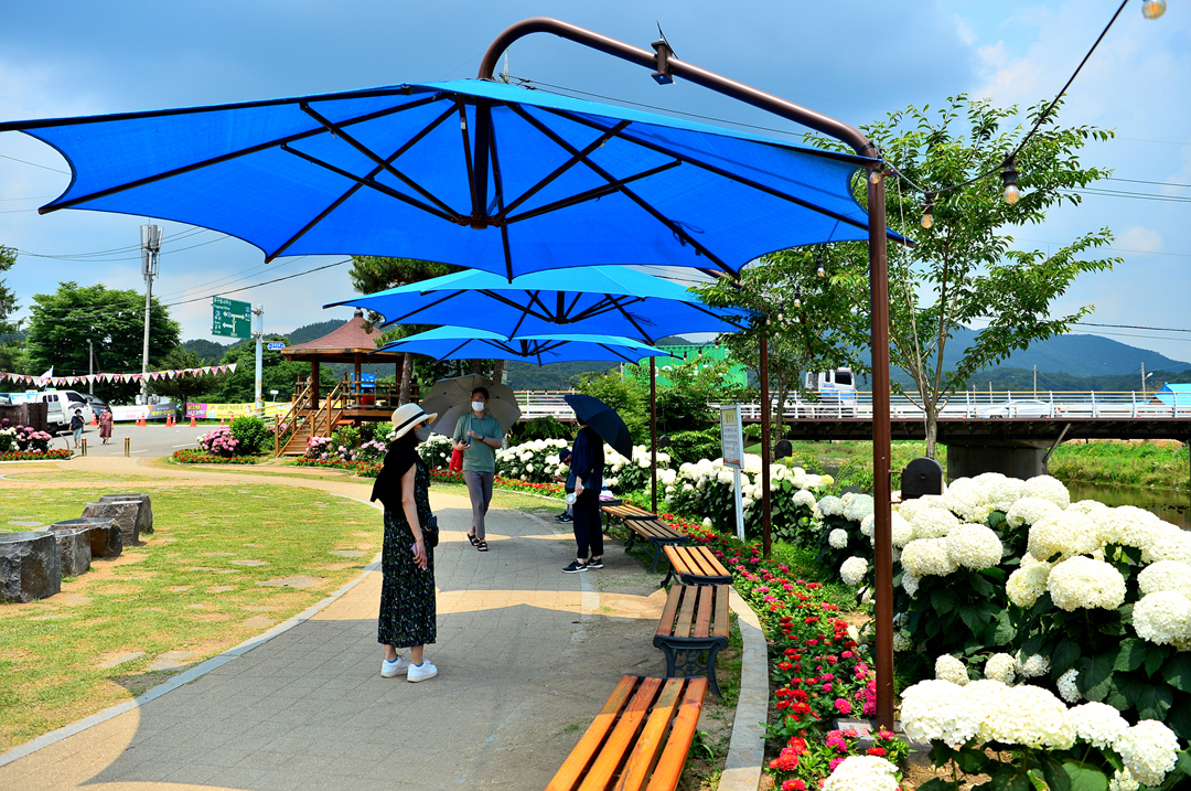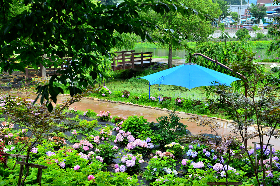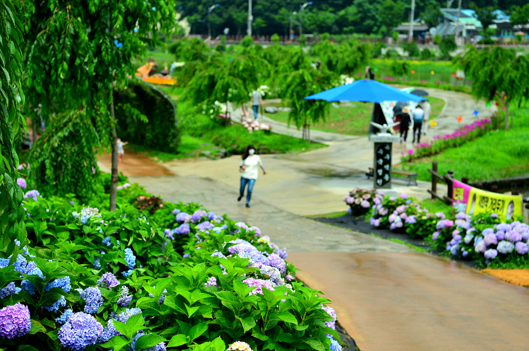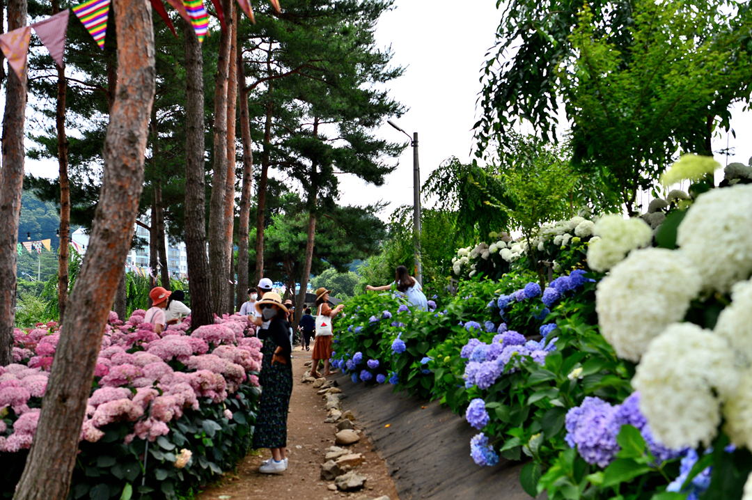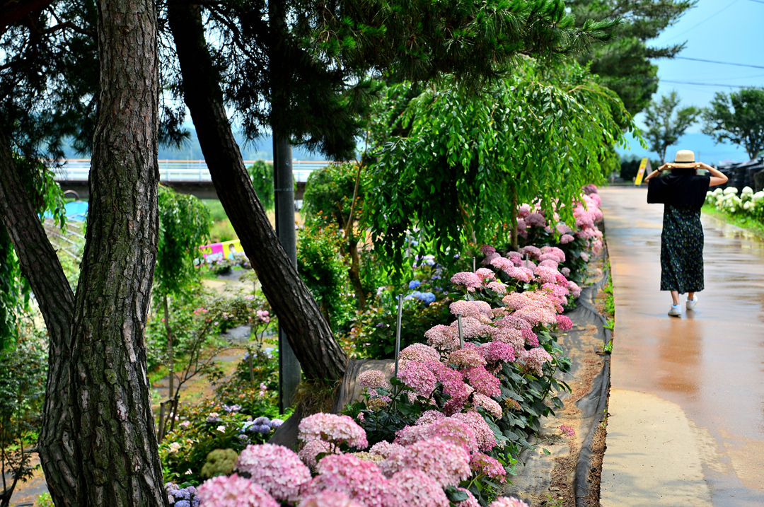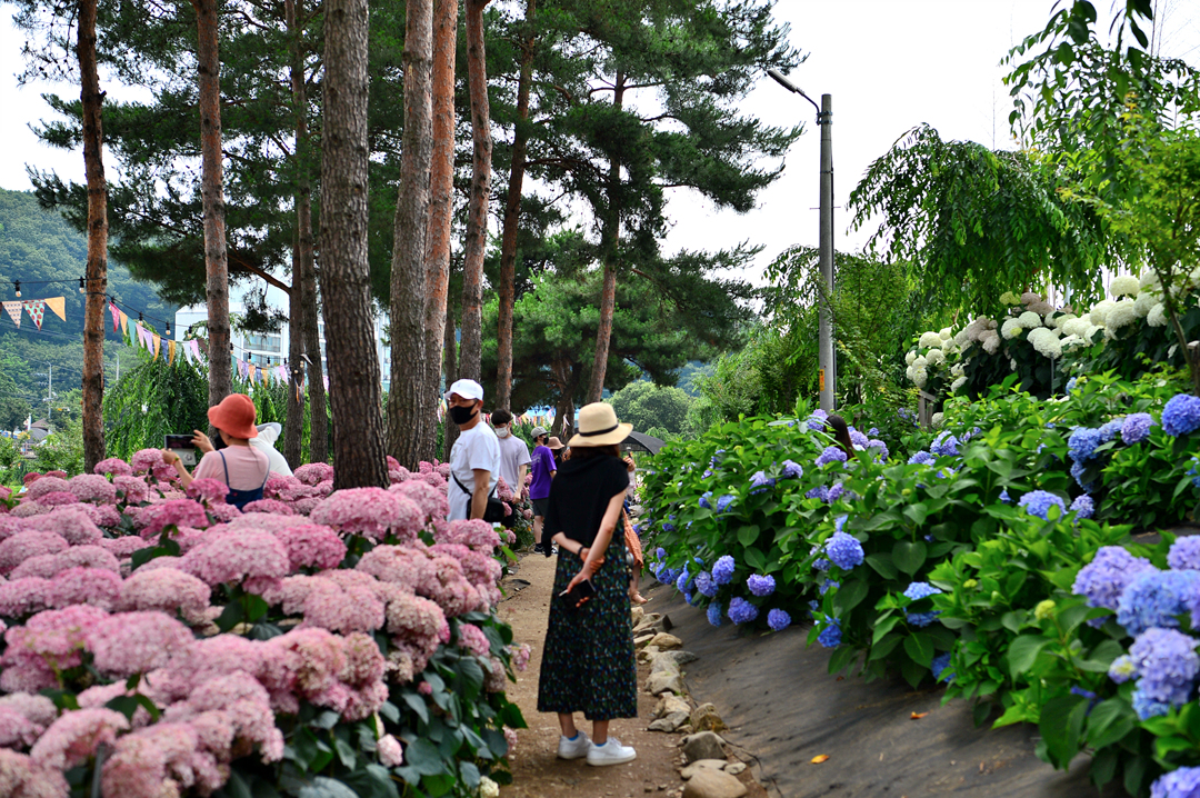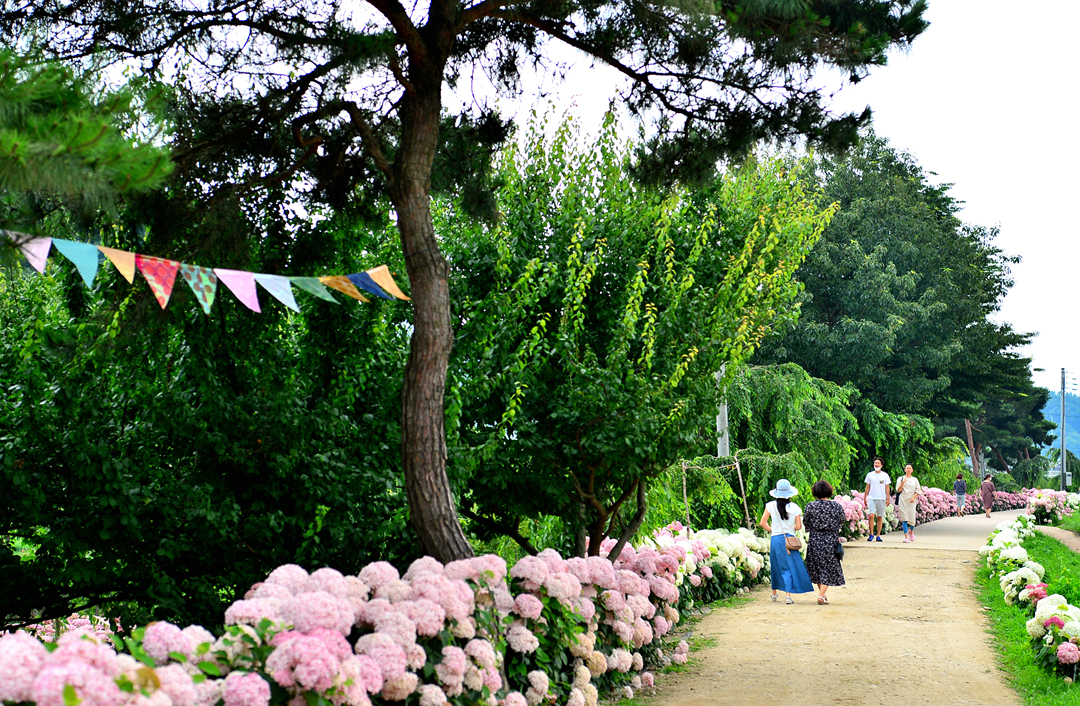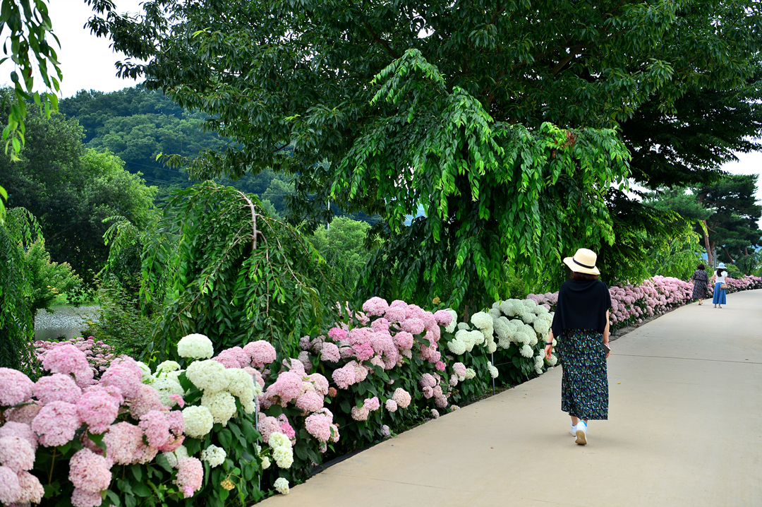 뚝길도 아름다운 수국으로 멋지게 장식되어 있다.