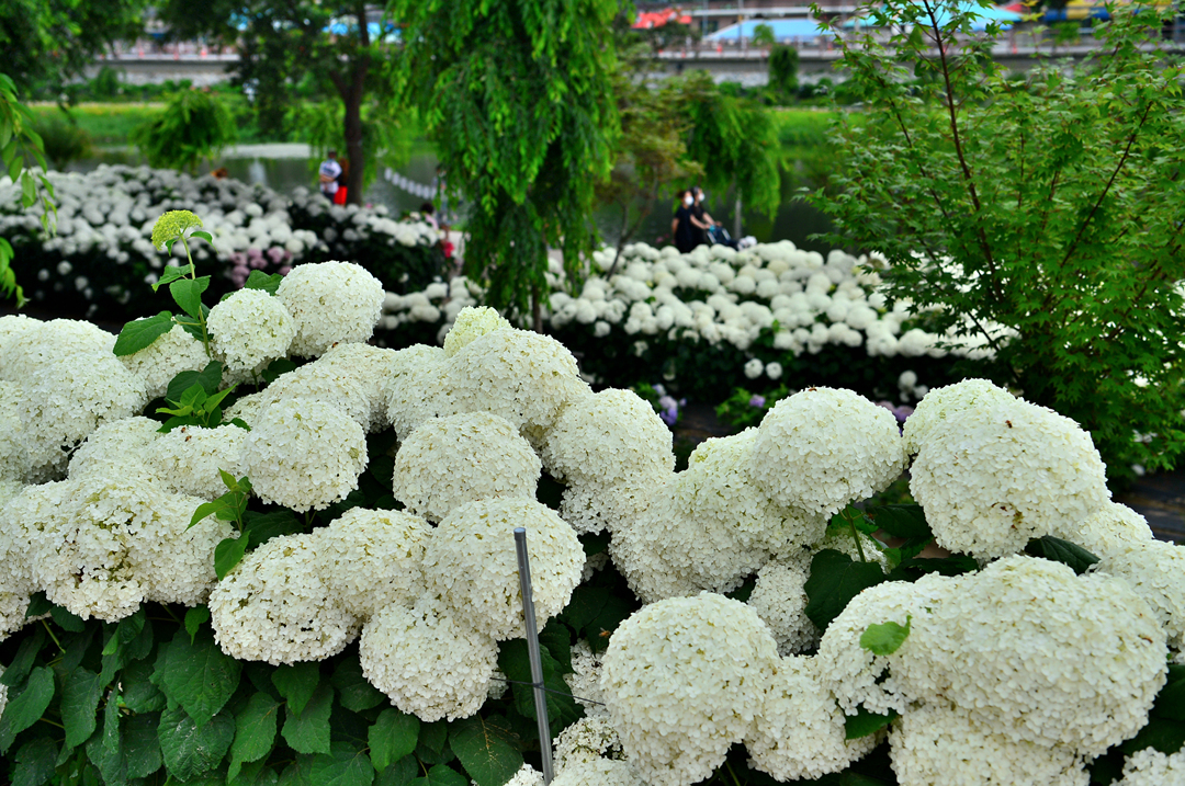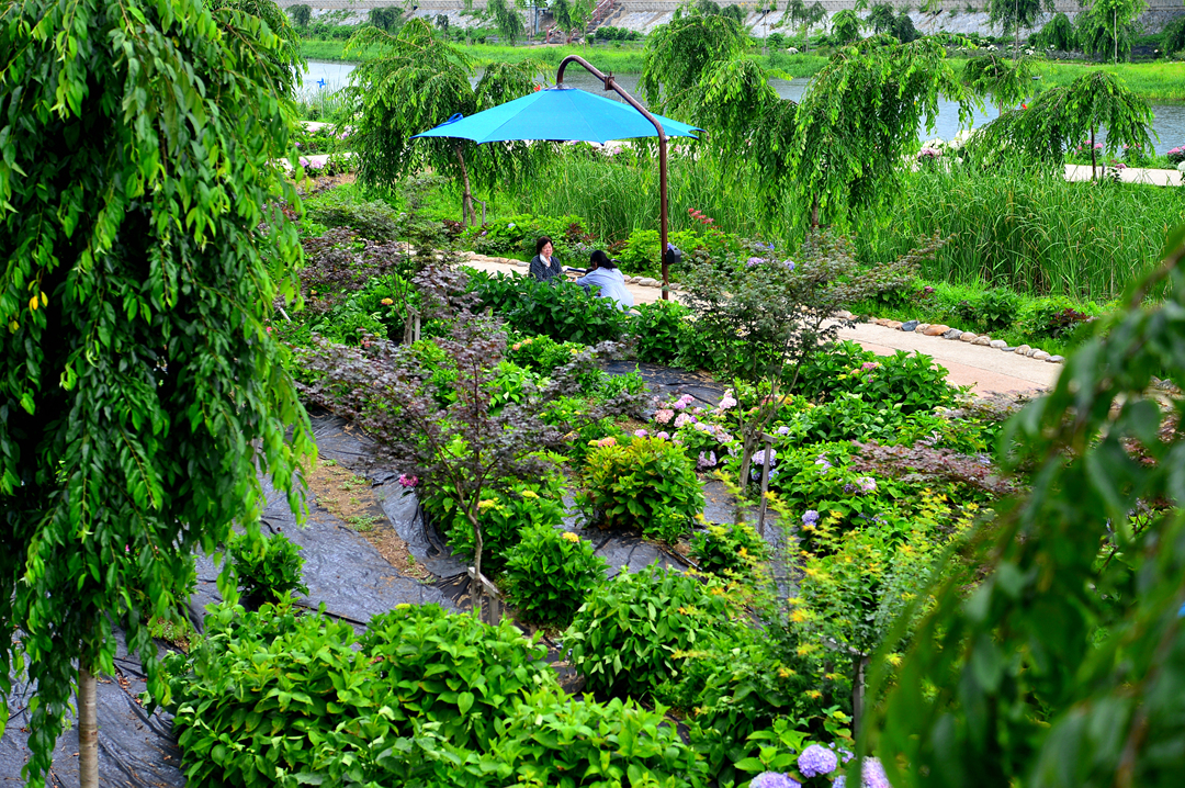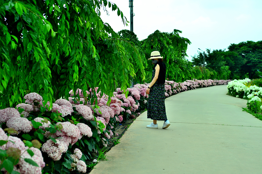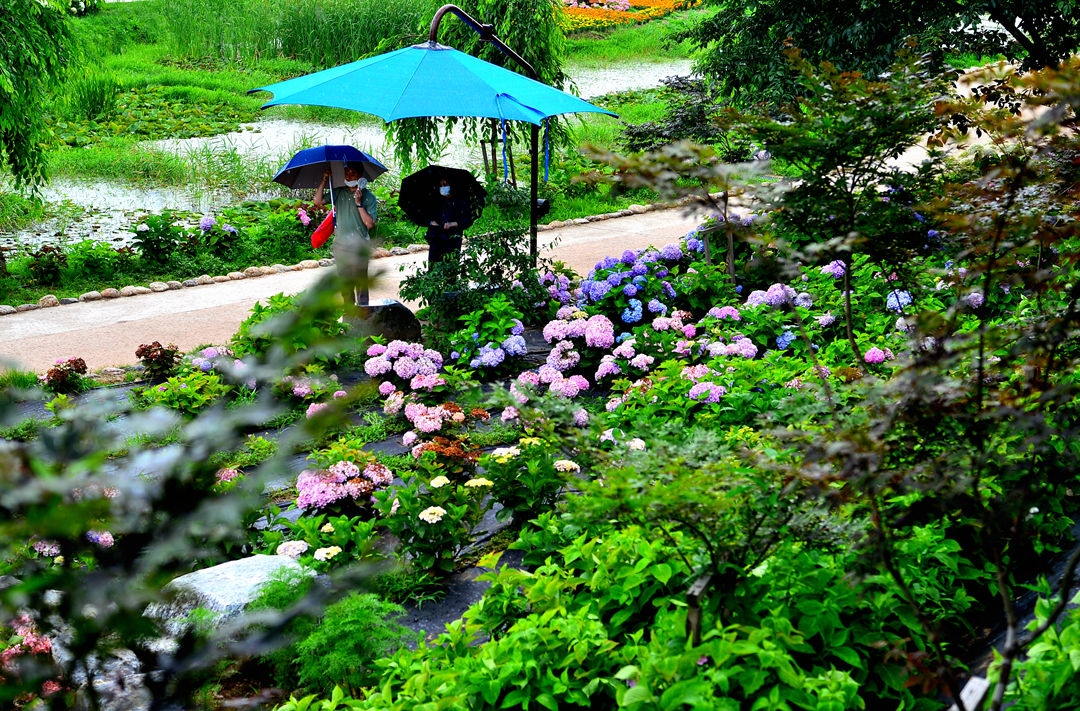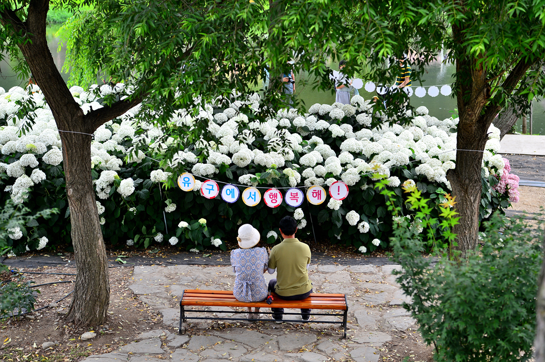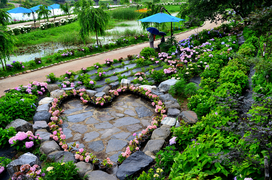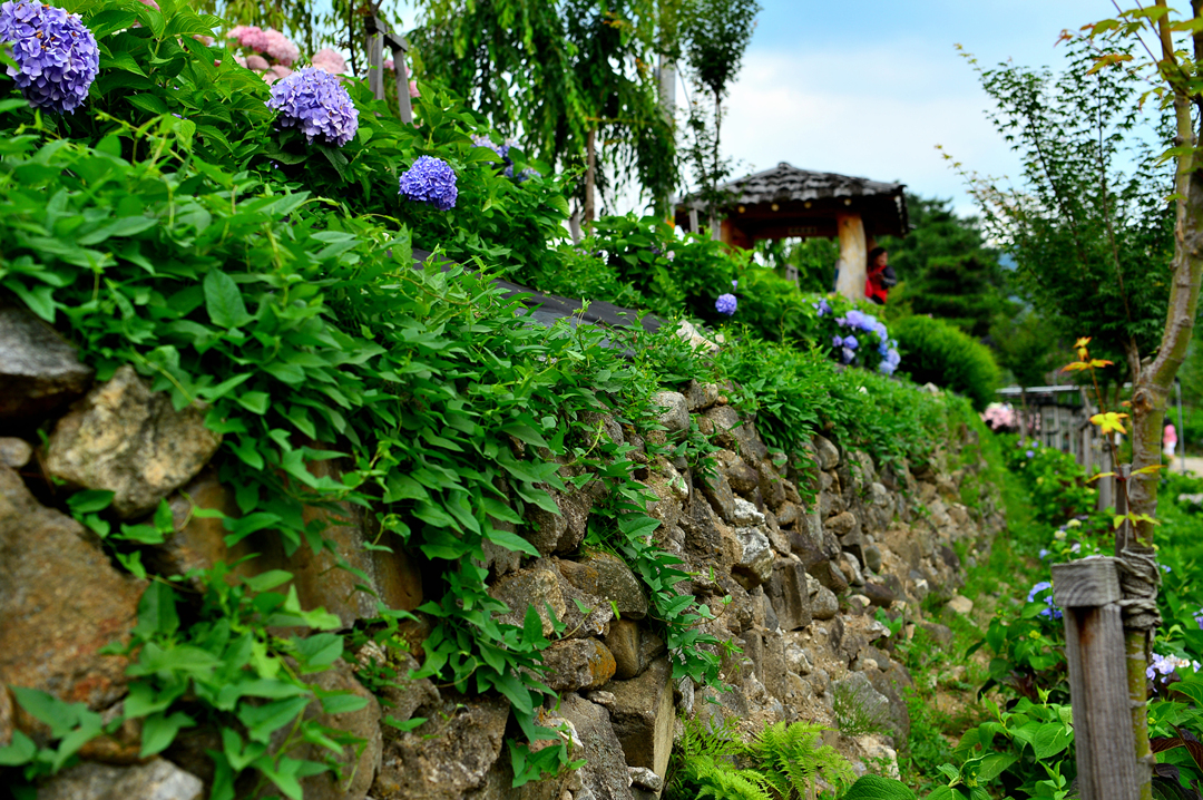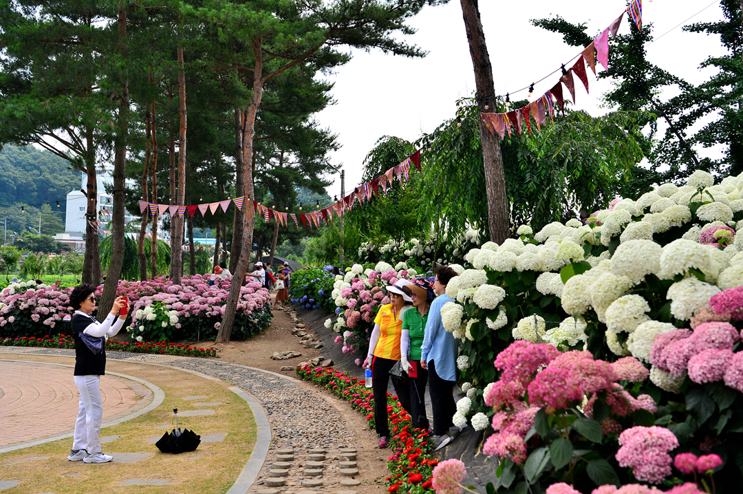 뚝길도 아름다운 수국으로 멋지게 장식되어 있다.
