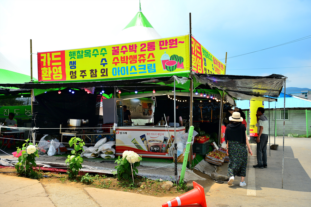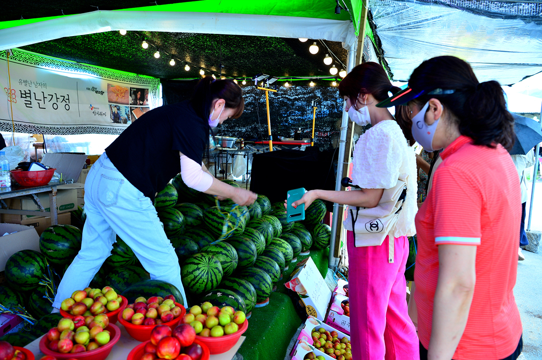 유구천 옆의 과일 가게도 때아닌 성황을 맞고 있다.