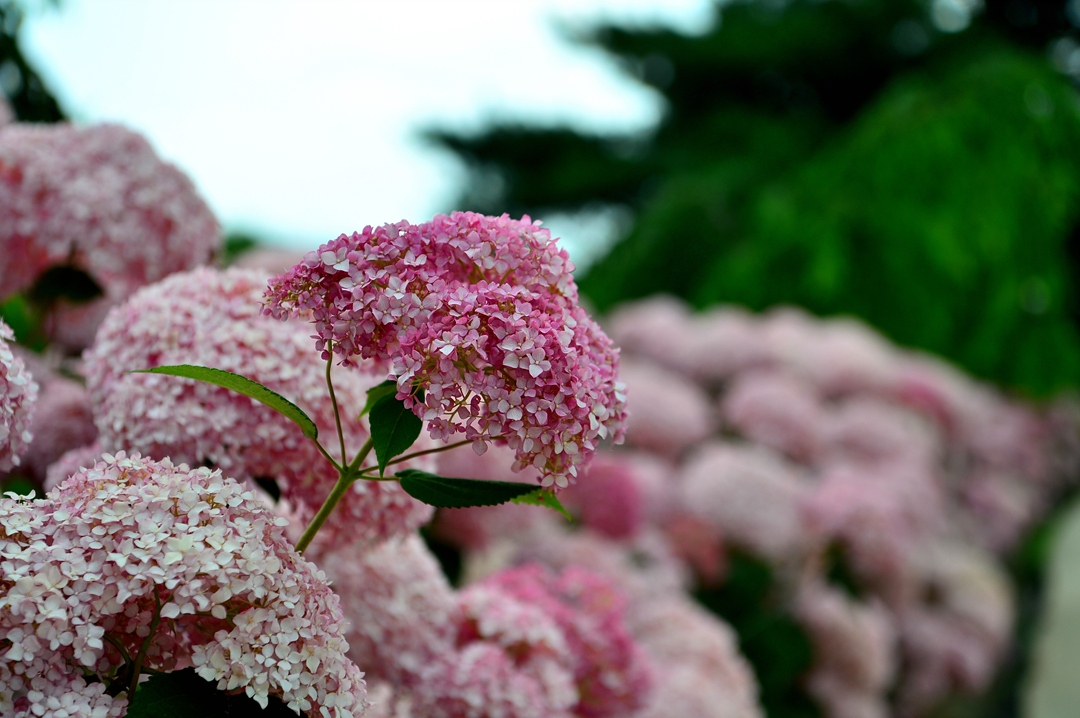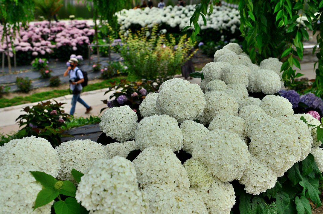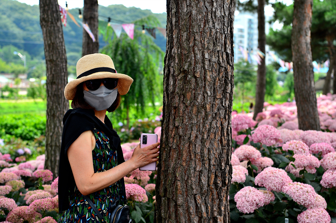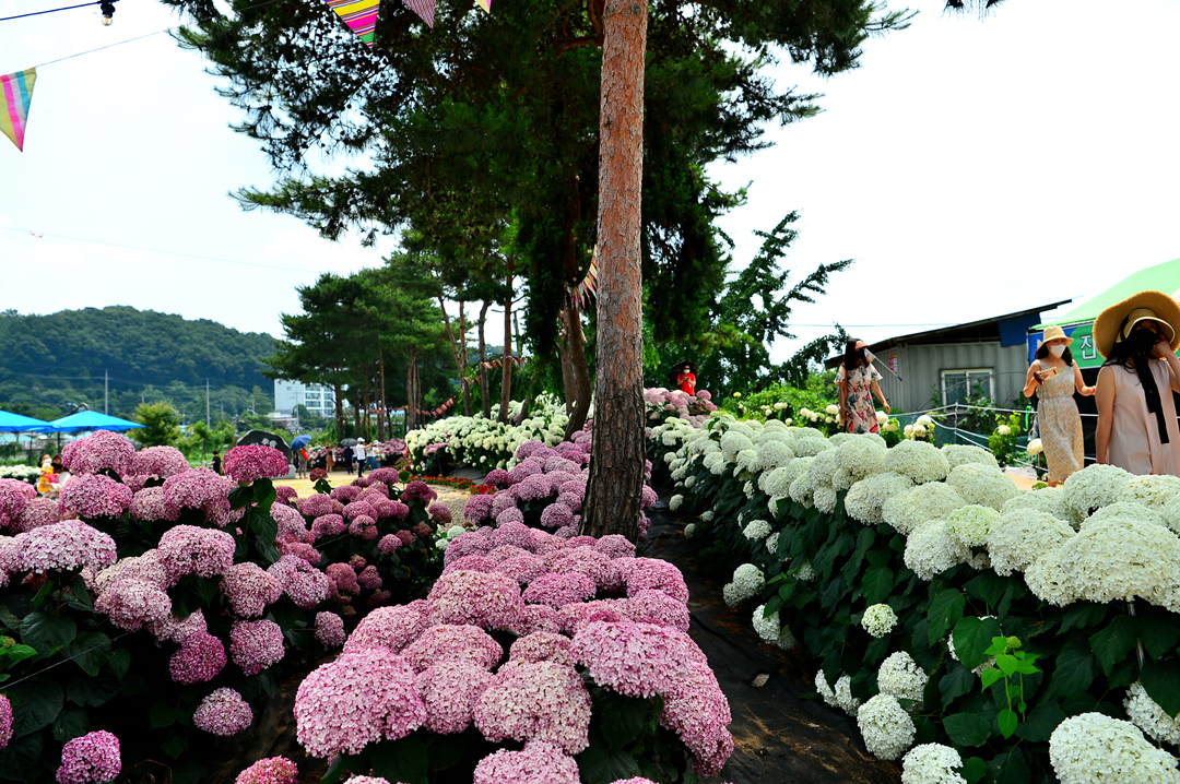약 1km에 걸쳐 펼쳐진 수국 정원의 시작이자 끝부분에서 만난 모습인데,