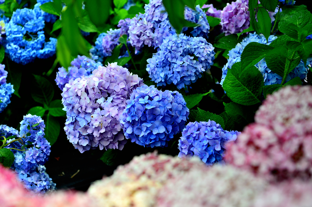 수국의 꽃 색깔은 토양의 산도에 따라 달라지는데 산성 토양에서는 파란색, 염기성 토양에서는
