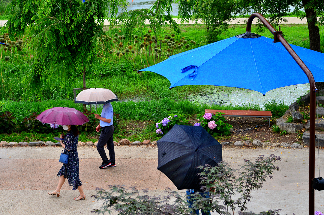우산인지 양산인지~ 준비가 철저한 이들은 우중산책도 서슴지 않는다.