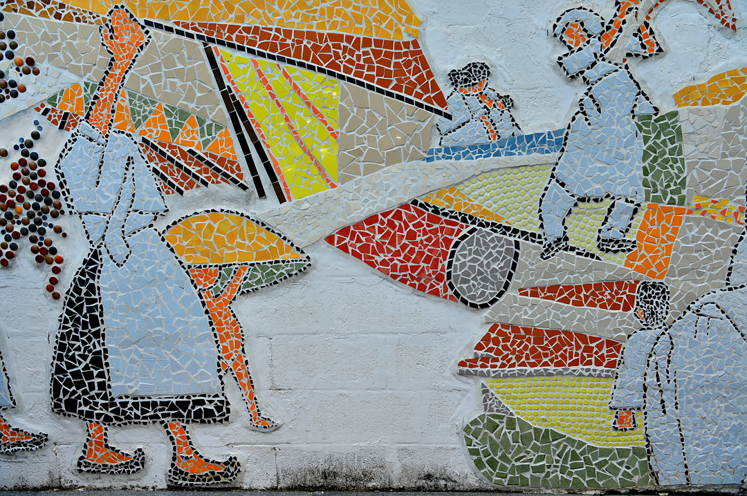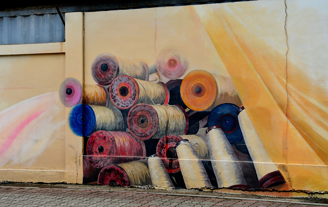 건물 형태나 벽화의 내용을 보니 이곳이 섬유 생산단지쯤 되었었나 보다.