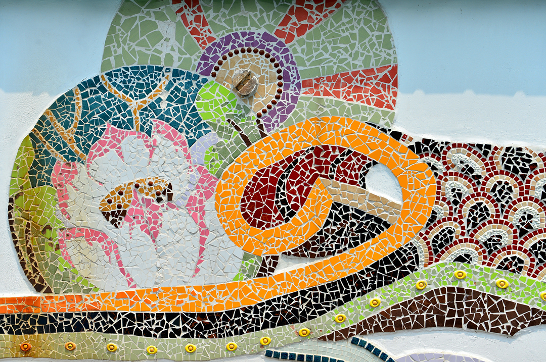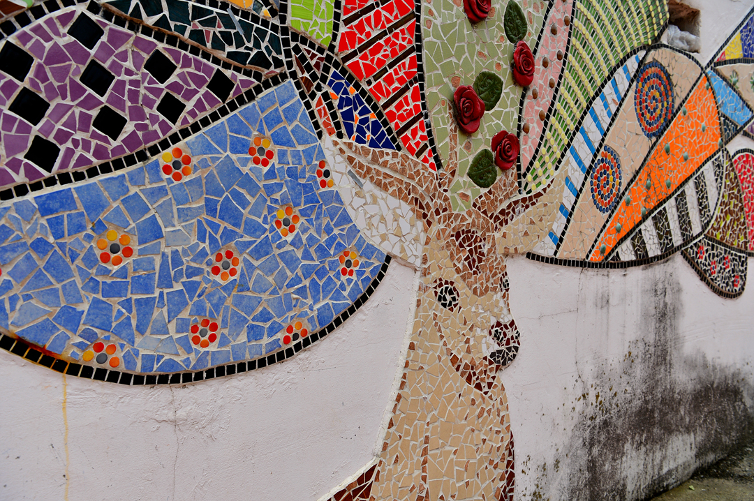 큰길로 접어드니 긴 건물 벽에 벽화가 줄지어 그려져 있다.