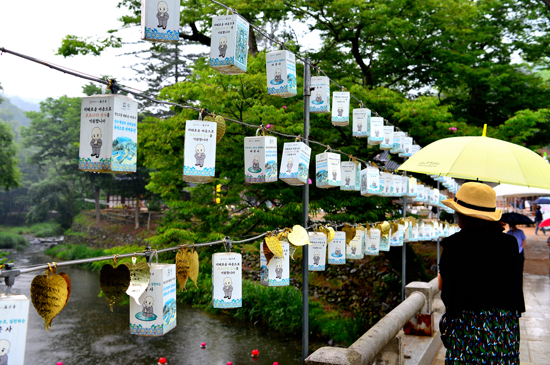 돌다리 위에는 수많은 연등이 걸려 있다.