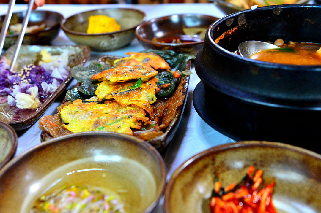 식탁의 마지막 빈자리를 채운 것은 갓 부쳐낸 전이다.