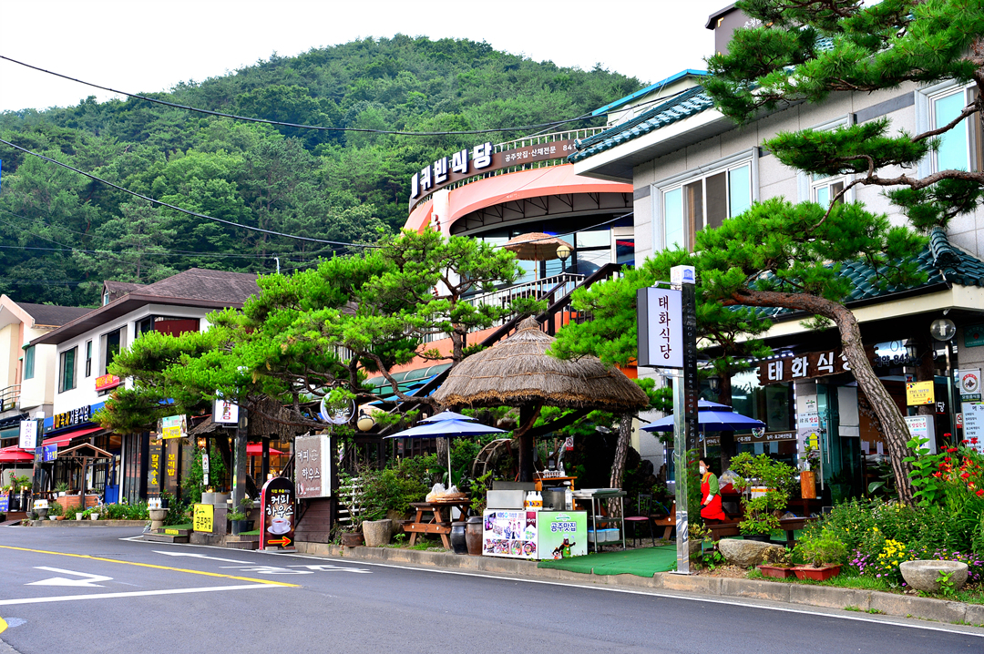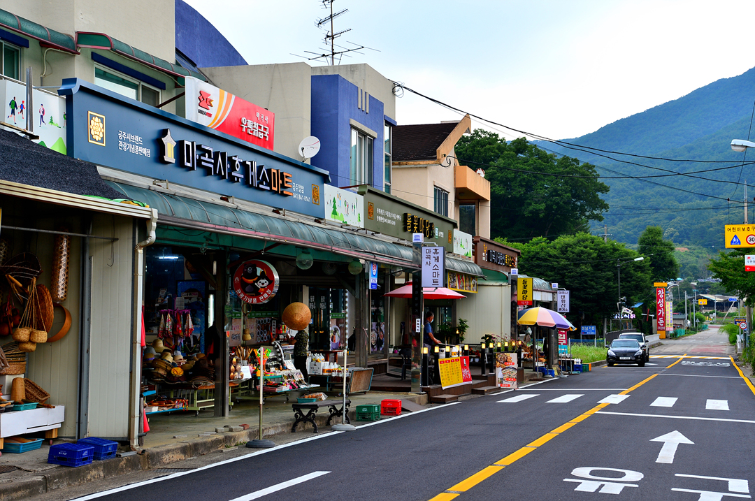 마곡사 입구 부분에 위치한 상가들 모습이다.