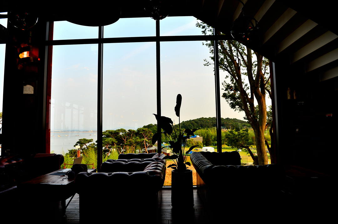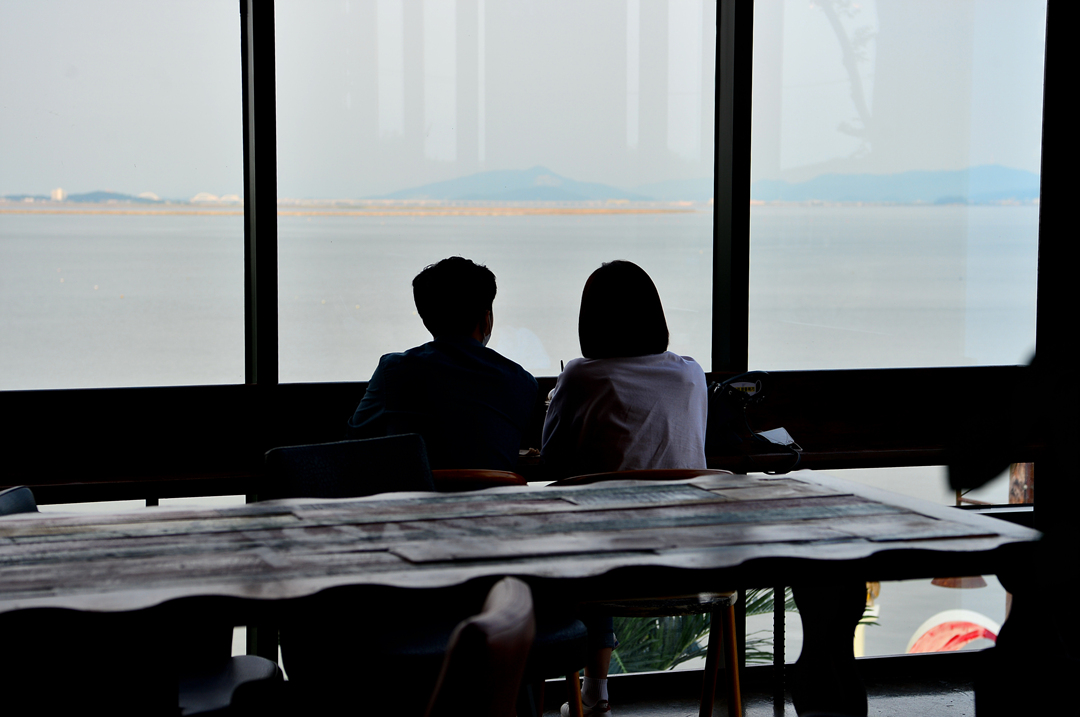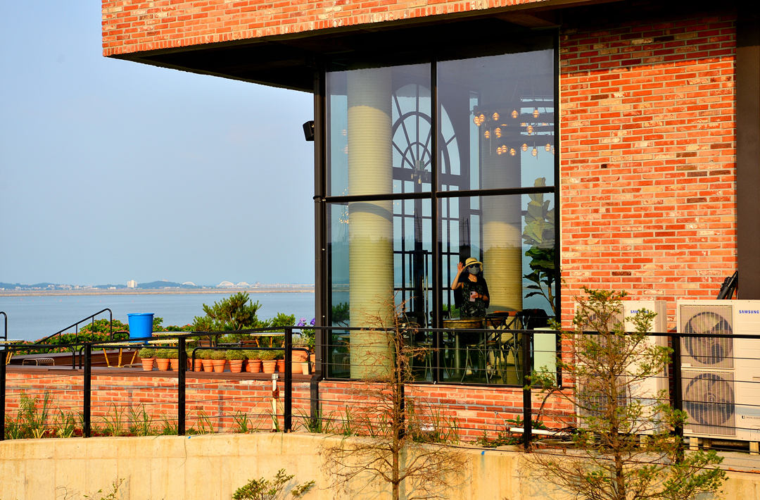 이들 카페가 자리한 바다 좌측으로는 서해대교와 행담도가 바라보인다.