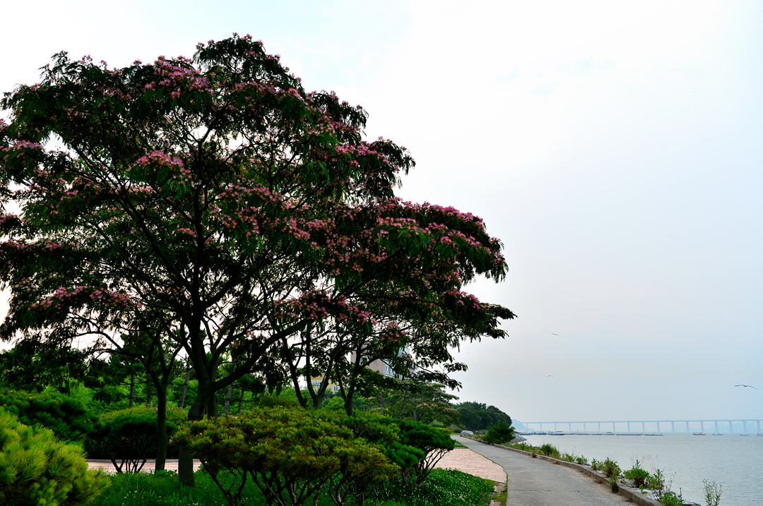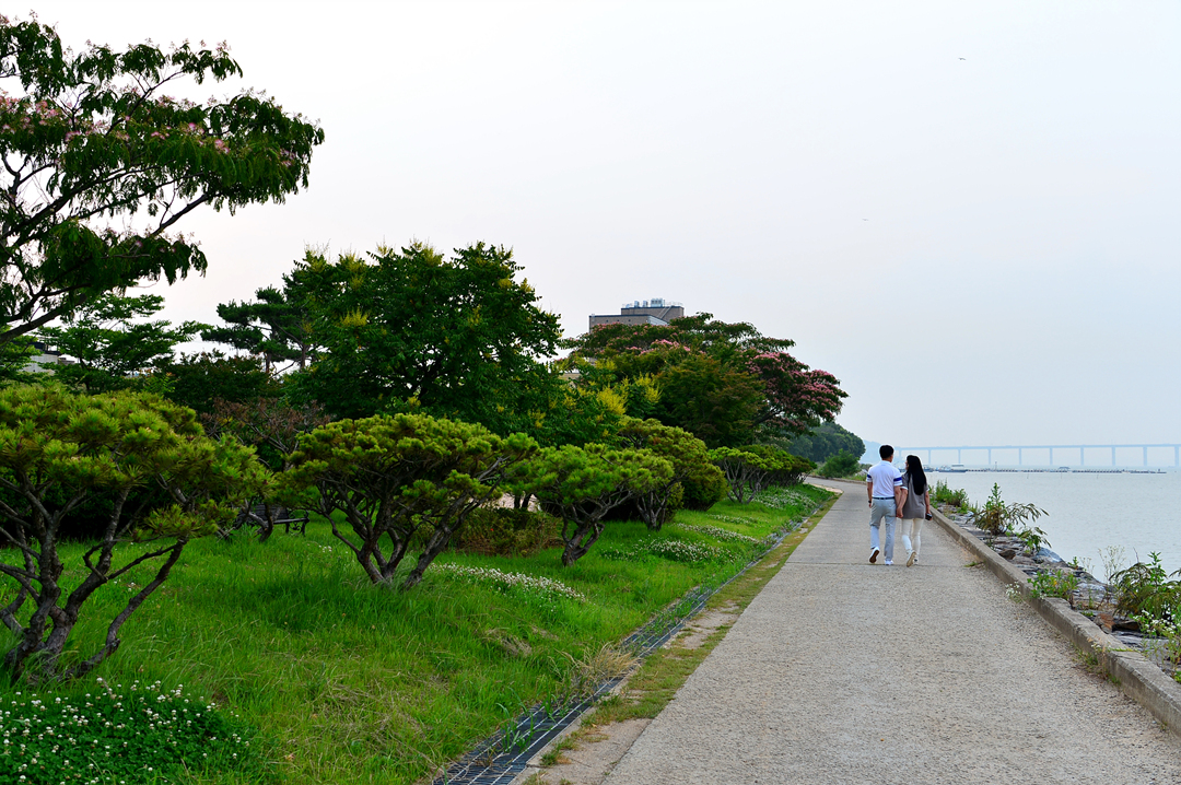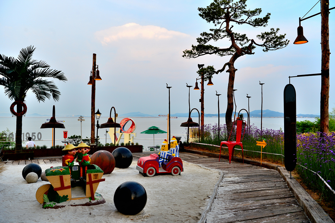 바다 건너 멀리 놀이기구 모습도 보인다.