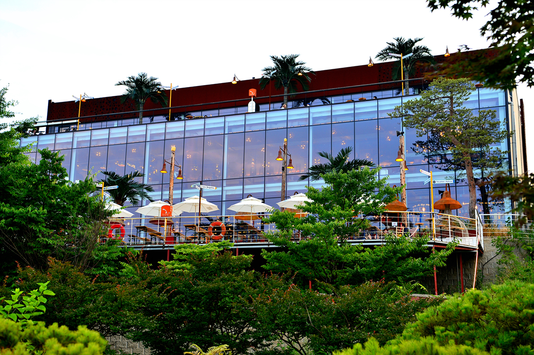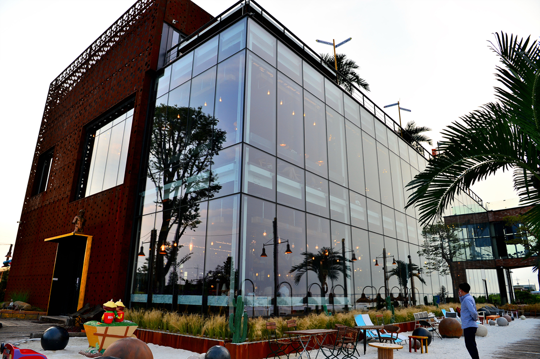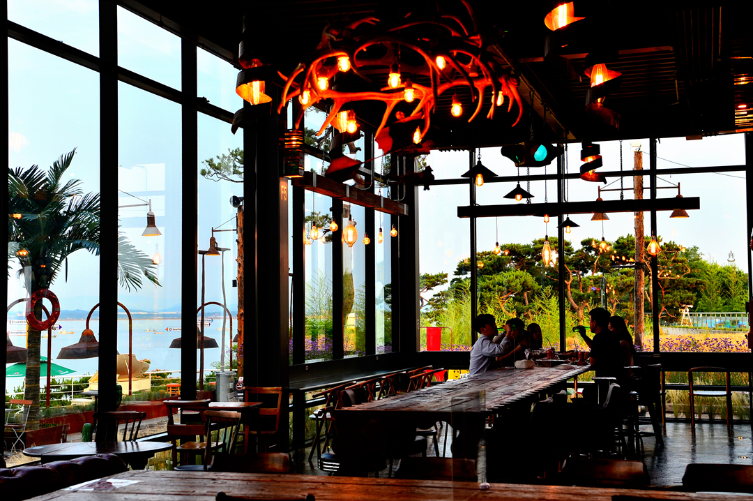 cafe ROAD 1950의 바닷가에 면한 부분 전경이다.