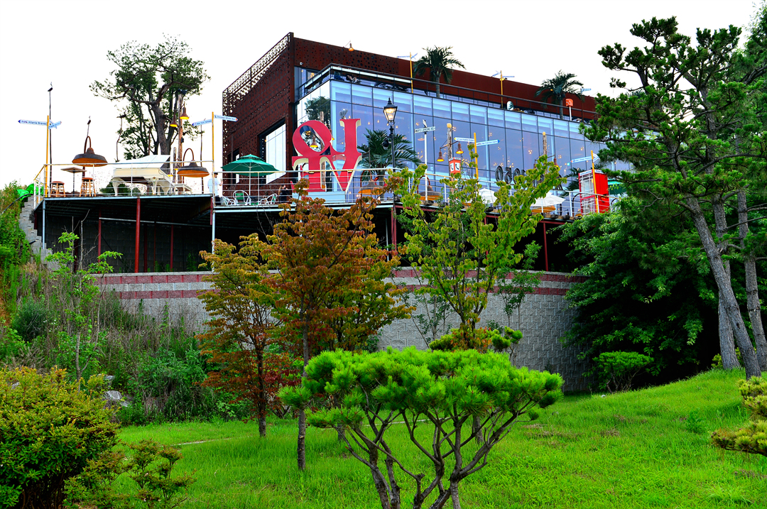 바닷가 산책길에서 올려다본 cafe ROAD 1950 모습이다.