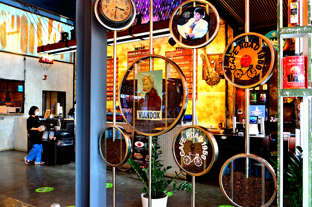 cafe ROAD 1950과 그 옆 카페 six o'clock 모습이다.