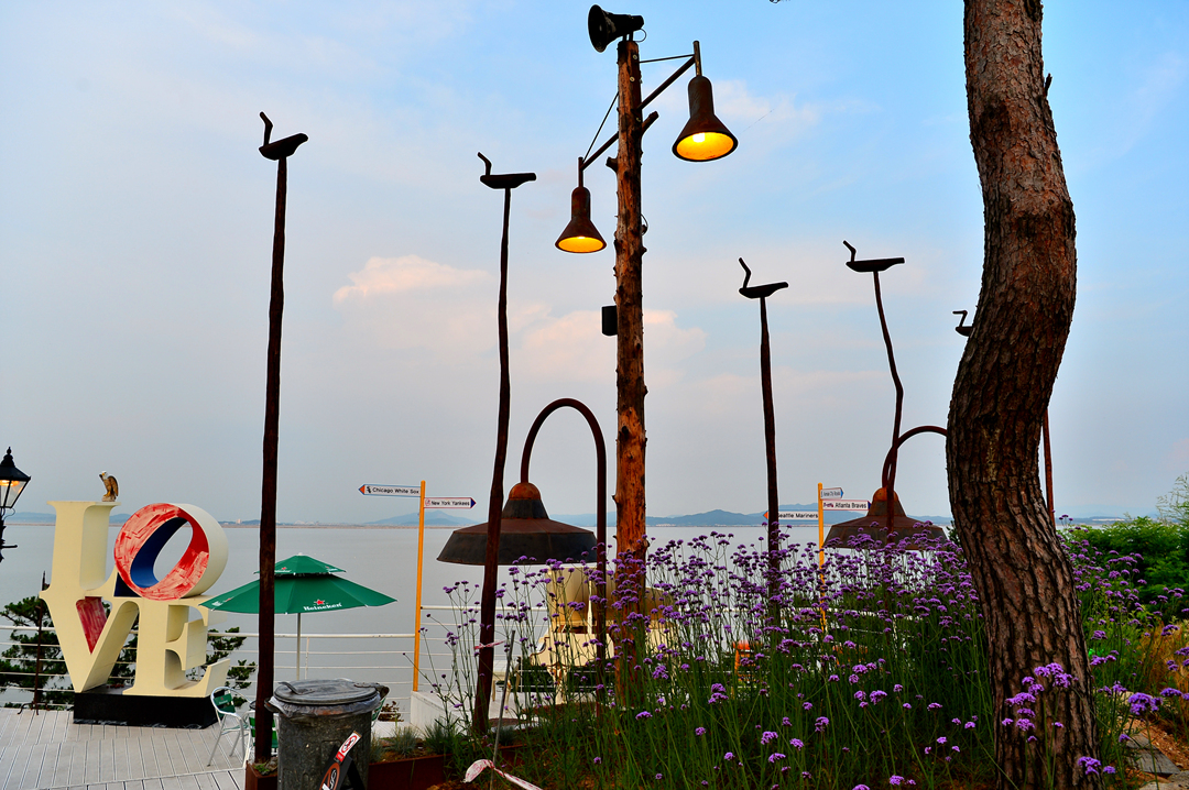 조명등 옆에는 높다란 솟대도 만들어 놓았다.