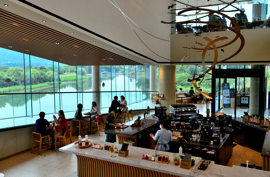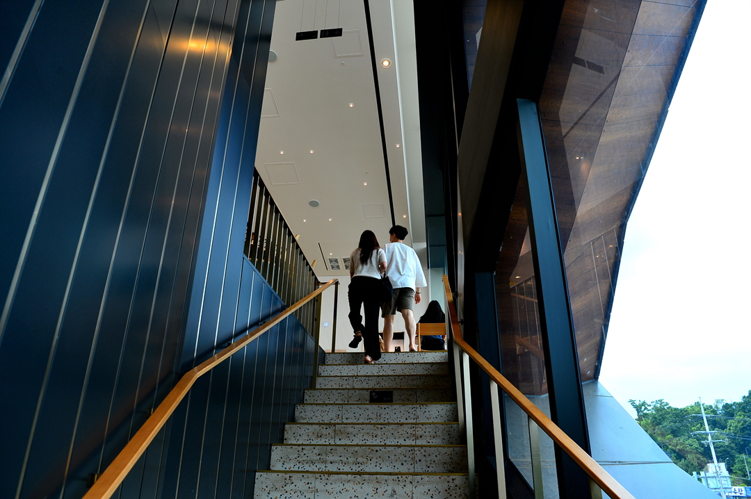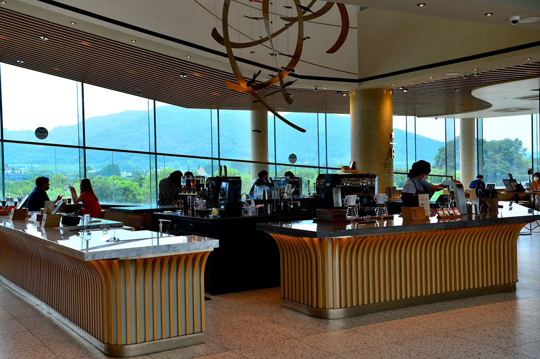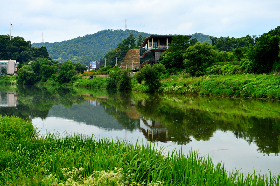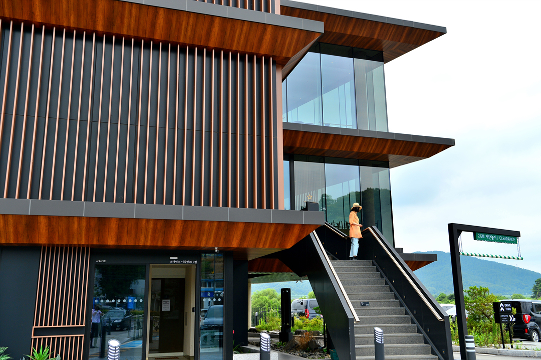 시원스러운 조망을 확보한 독특한 형태의 건축물이 어우러져 만들어 낸