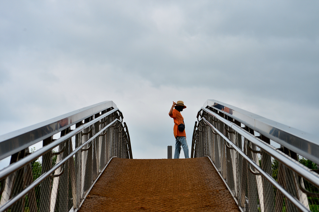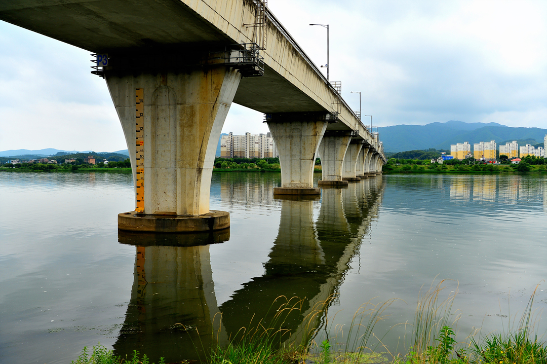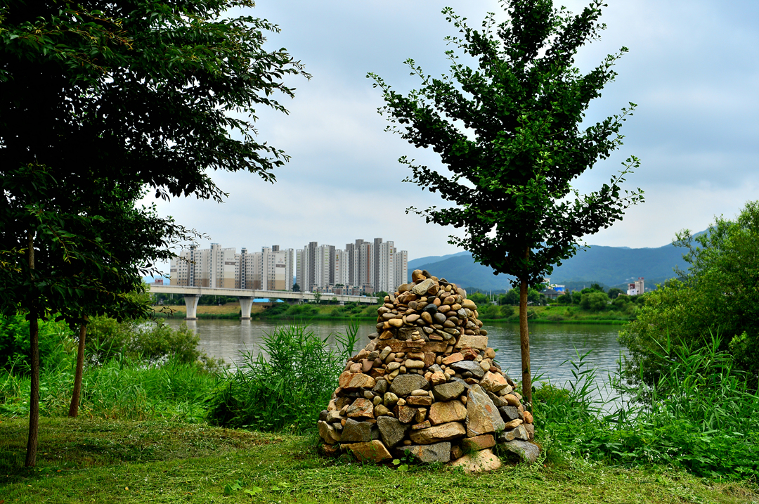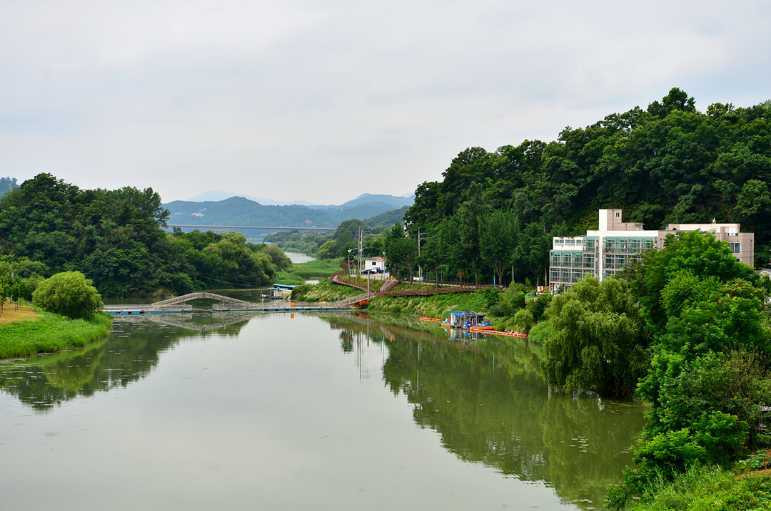 강이 바라보이는 쪽에는 경사로를 만들어 이동하면서 강을 조망해 볼 수 있도록