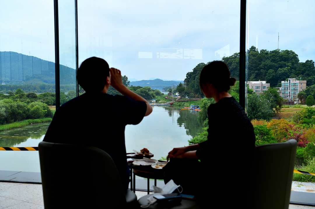 시원스럽게 툭 트인 시야를 통해 강과 섬을 조망해 볼 수 있도록 해 놓았다.