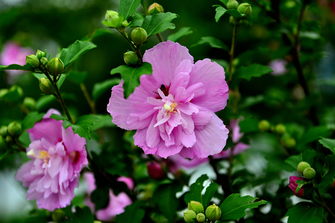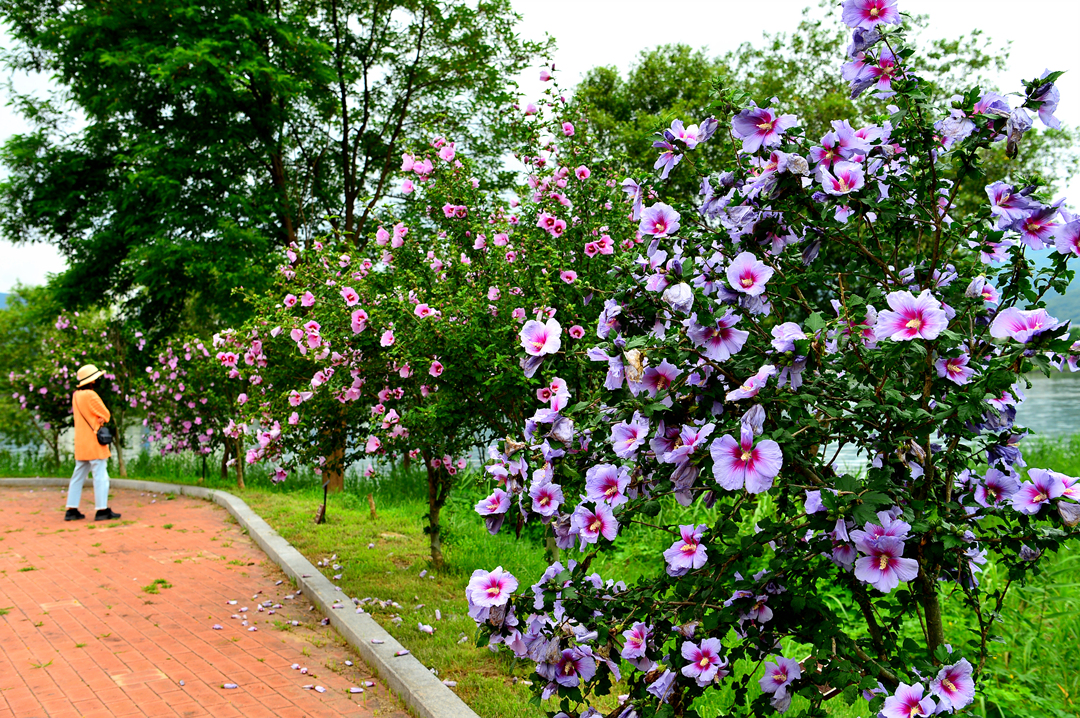 안내판에서 소개해 놓은 다양한 무궁화가 공원 산책길 주변을 장식하고 있다.