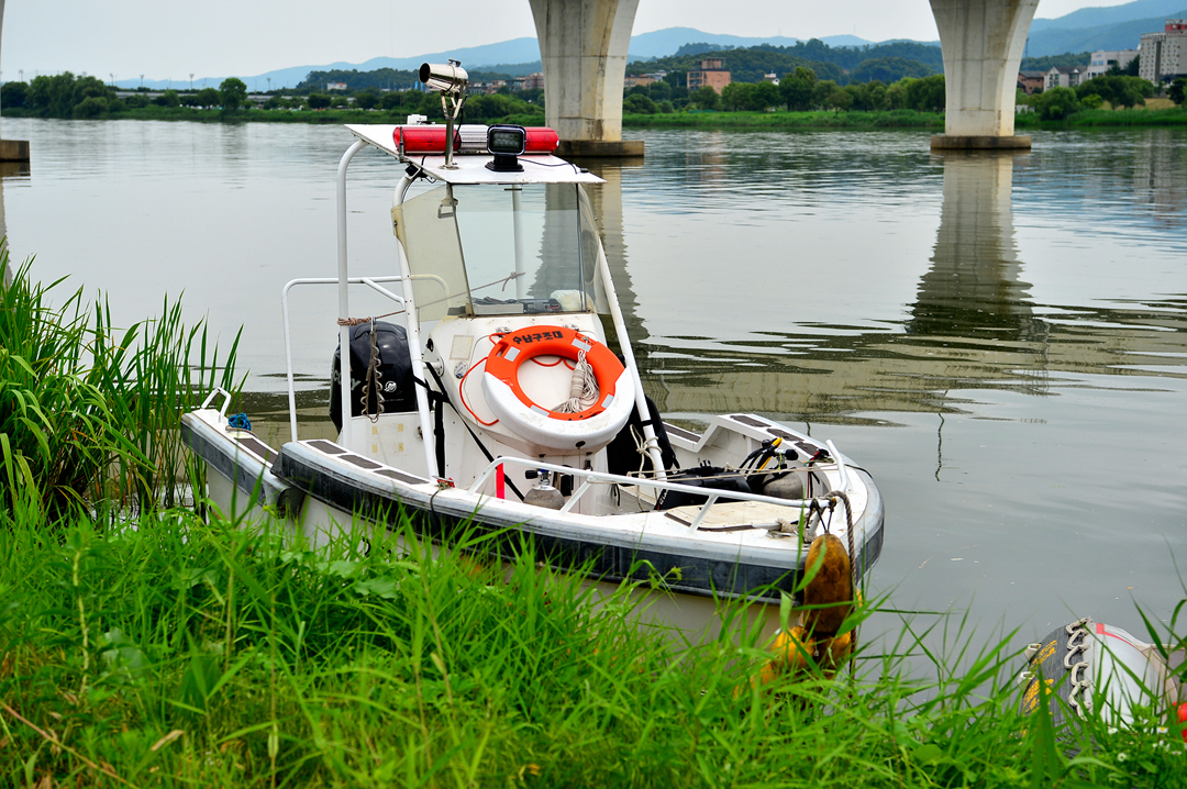 강을 오르내리는 순찰 보트가 매어져 있다.