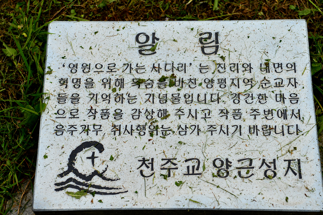 양평지역 순교자들을 기억하는 천주교 기념물이라는 표지석이 세워져 있다.