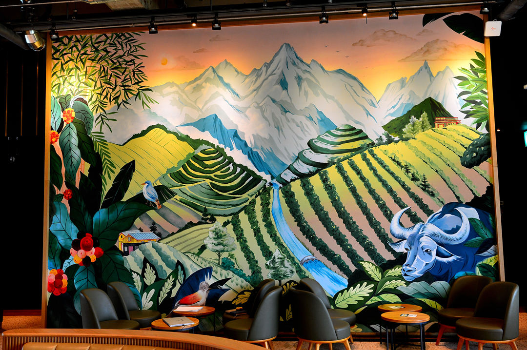카페의 제일 아래층에 걸려 있는 그림인데, 수려한 양평의 산수를 표현했나 보다.