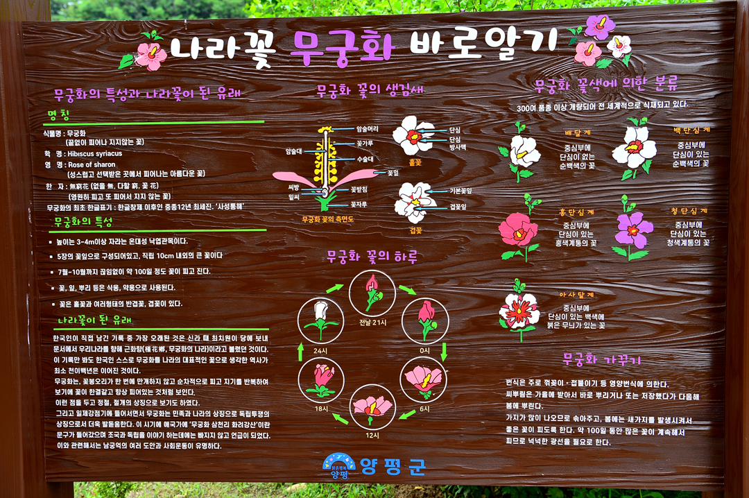 양감섬에 만들어 놓은 무궁화에 대한 안내판이다.