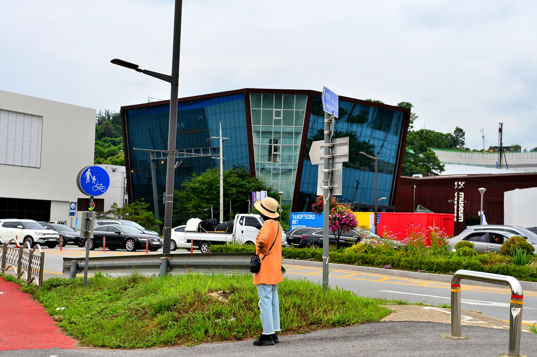 다면체의 독특한 외형을 갖고 있는 이 건물은 양평 아트 뮤지엄이란다.