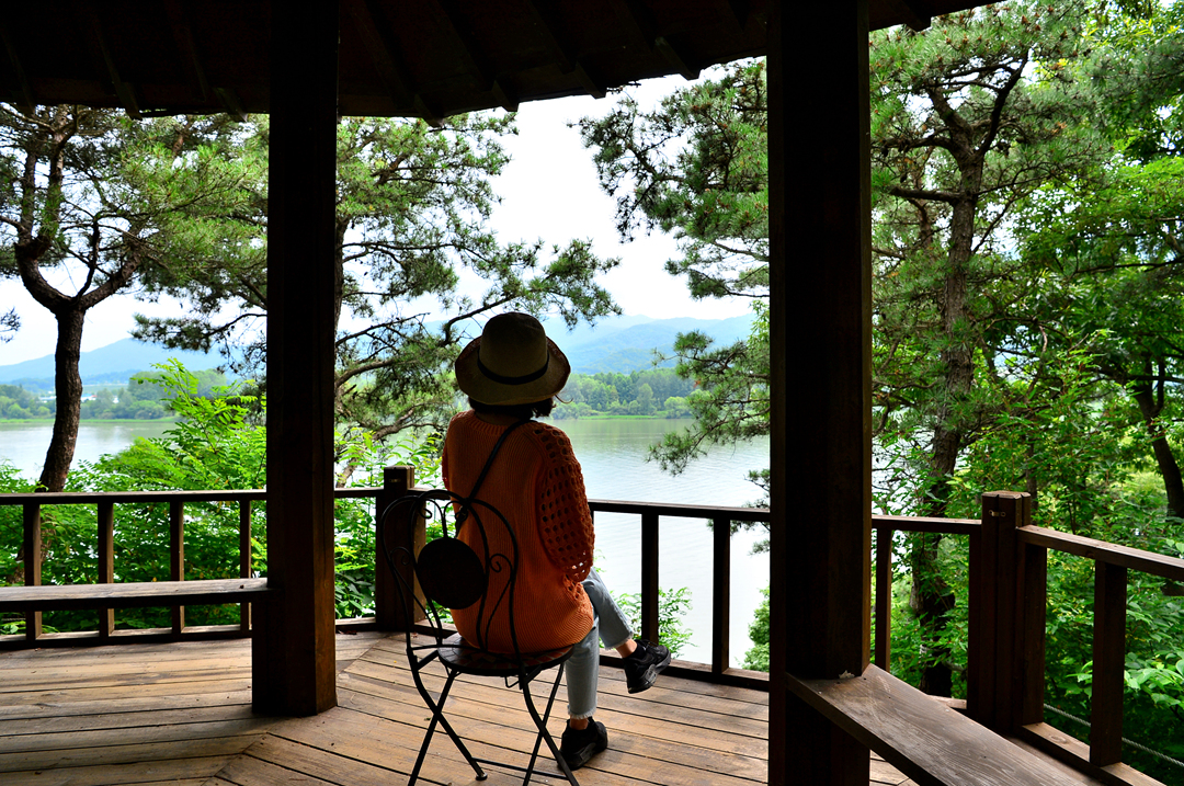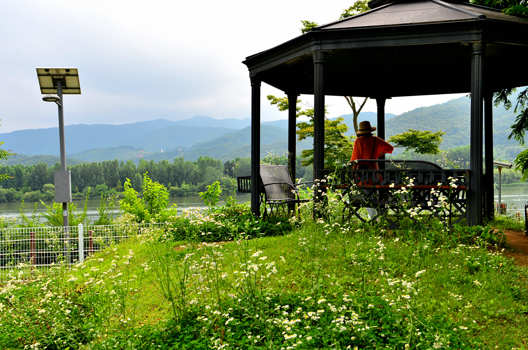 시원스러운 조망을 자랑하는 이 정자 바로 앞은 강변을 달리는 자전거 도로와 산책로가 조성되어 있다.