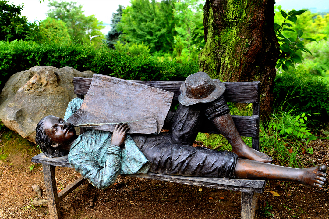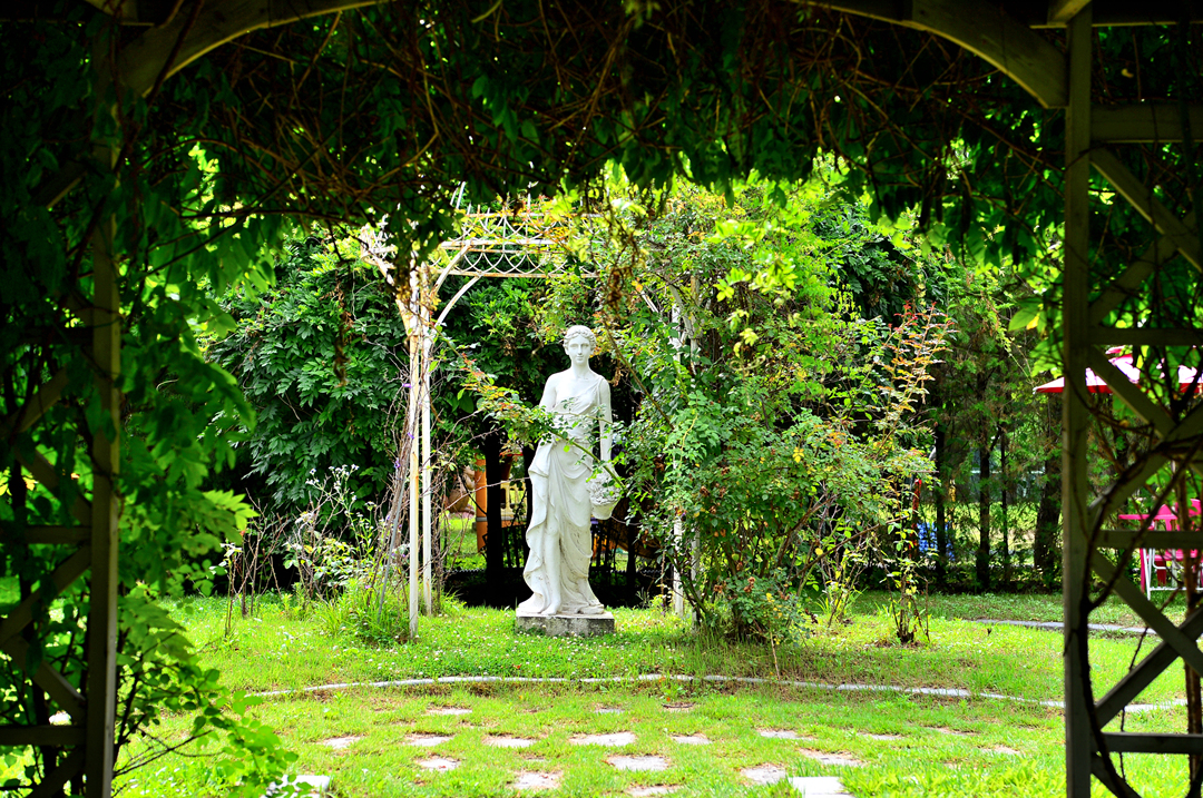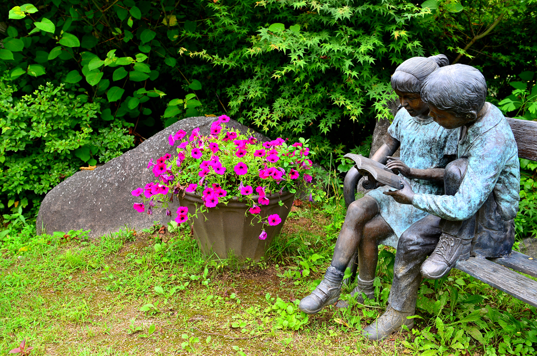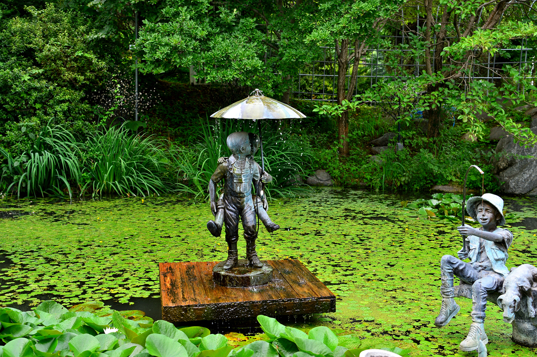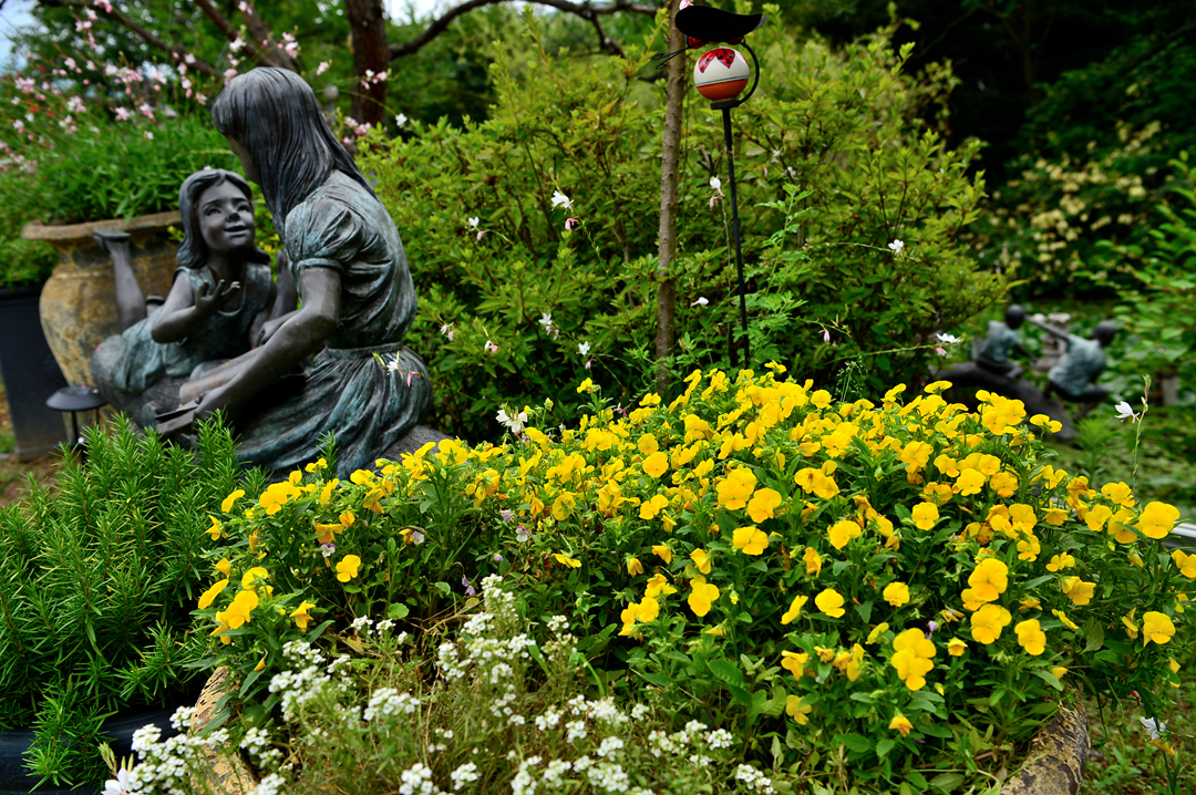 각종 꽃들과 함께 아이들을 소재로 한 다양한 조각상들이 많이 보인다.