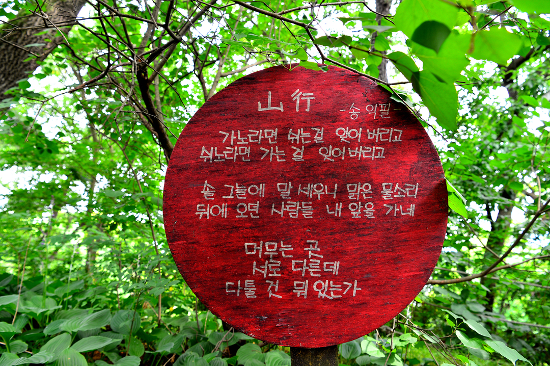산책길 옆에 매달아 놓은 시구가 마음에 든다.