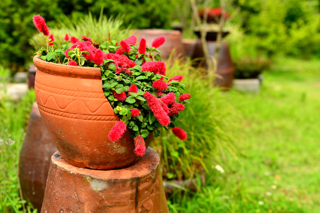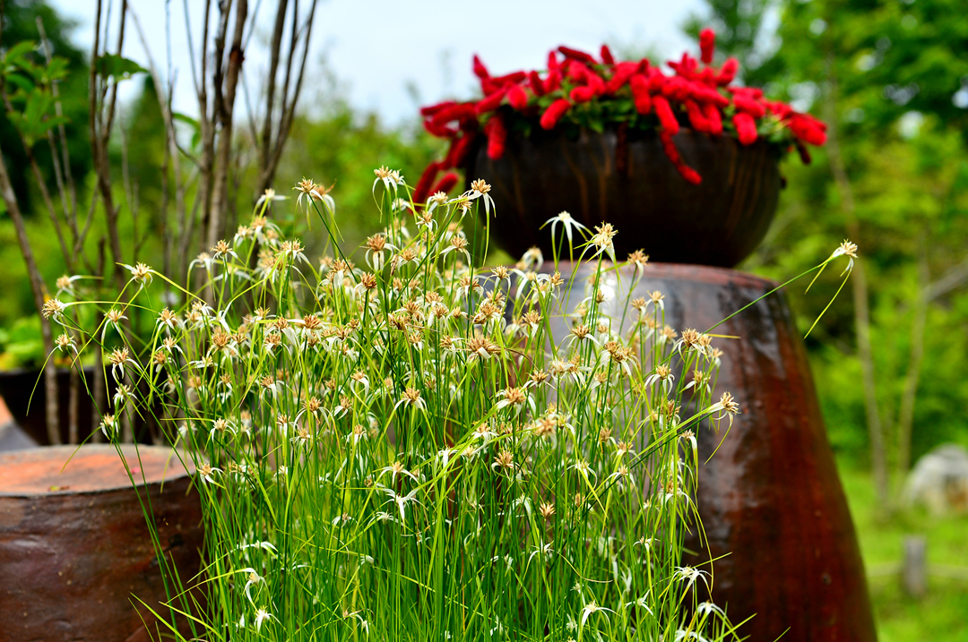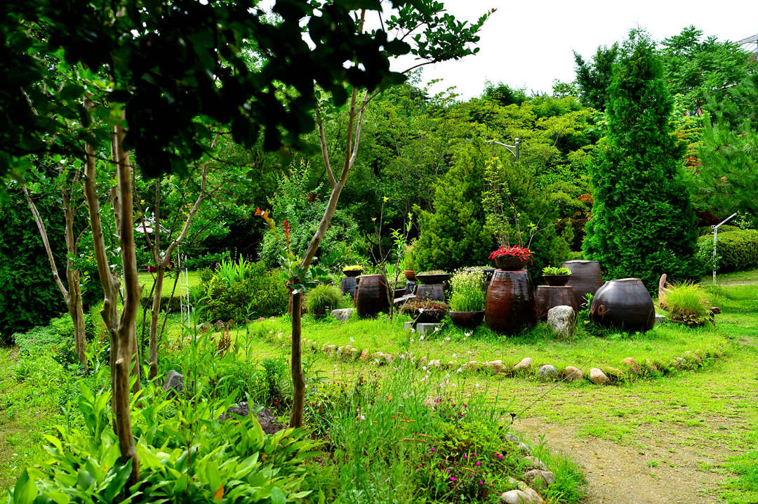 옹기에 담겨 예쁘게 자라고 있는 꽃도 있다.