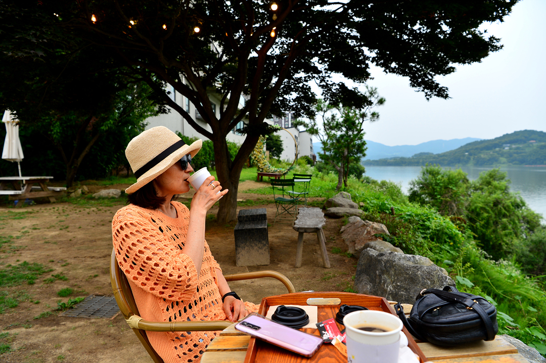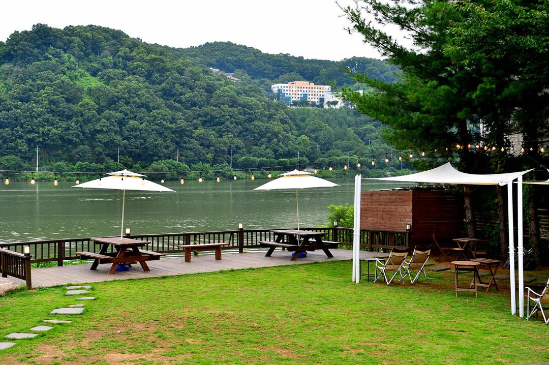 툭 트인 강변에서 즐기는 커피 한 잔~
