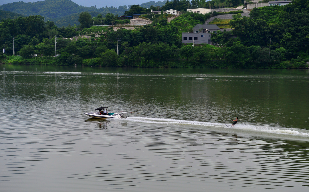 물살을 가르며 시원스럽게 내달리는 수상 스키어 모습도 보인다.