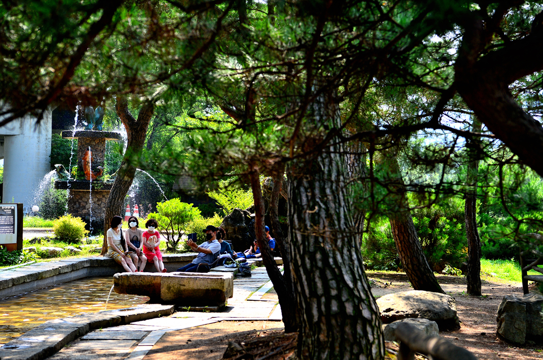 세족대에서 발의 피로를 풀고 있는 내방객들 모습도 보인다.