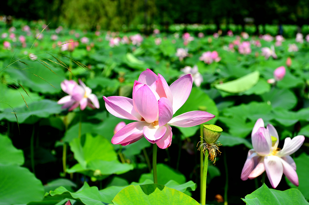 발그스레한 붉은 연꽃이 아름답기 그지없다.