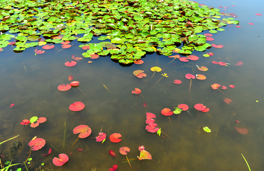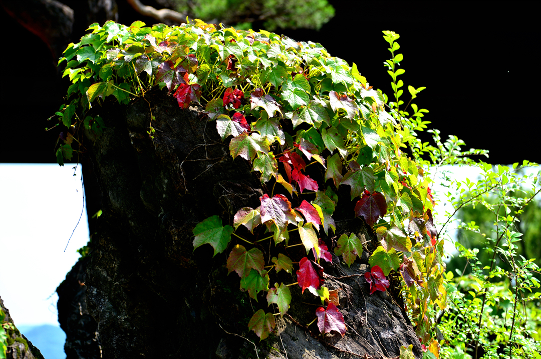 홍연지 옆의 담쟁이에도 붉은 연꽃 물이 스며들었나~?