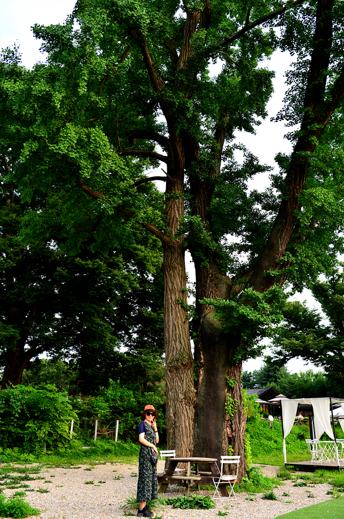 수수 카페를 찾은 대부분의 사람들이 커다란 느티나무 아래의 야외 테이블에