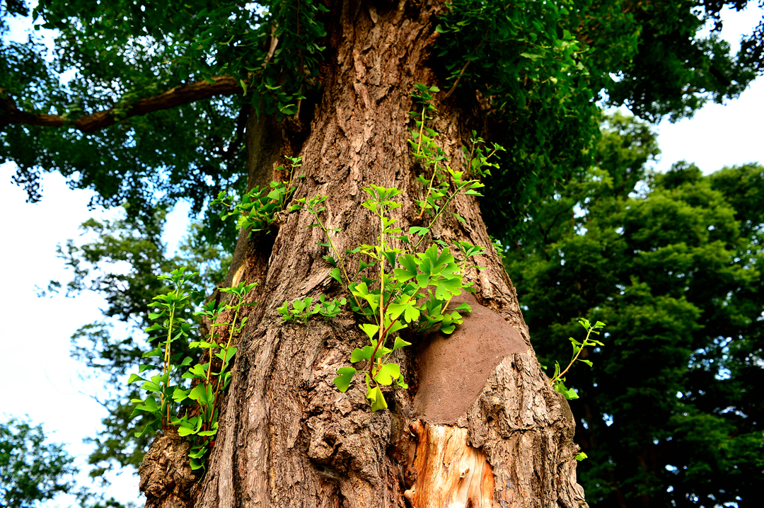 강변의 엄청나게 키가 큰 은행나무 모습이다.