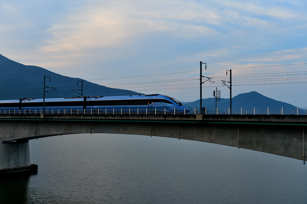 멋지게 생긴 열차가 힘찬 발길을 하고 있다.